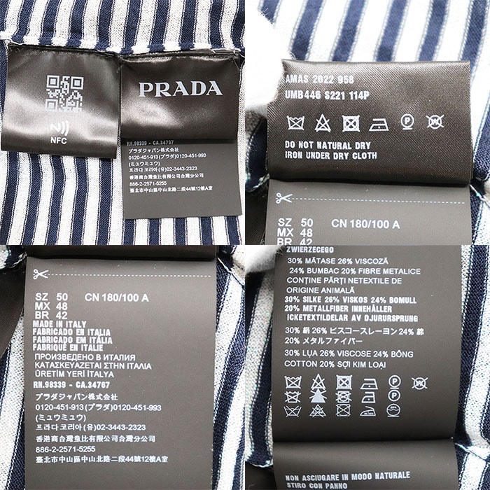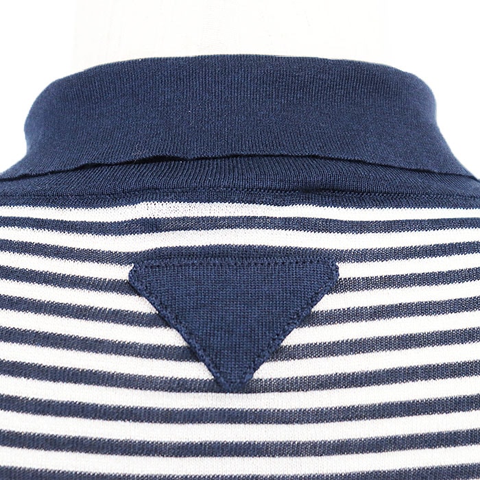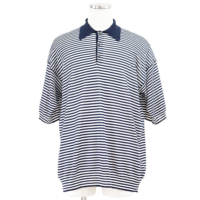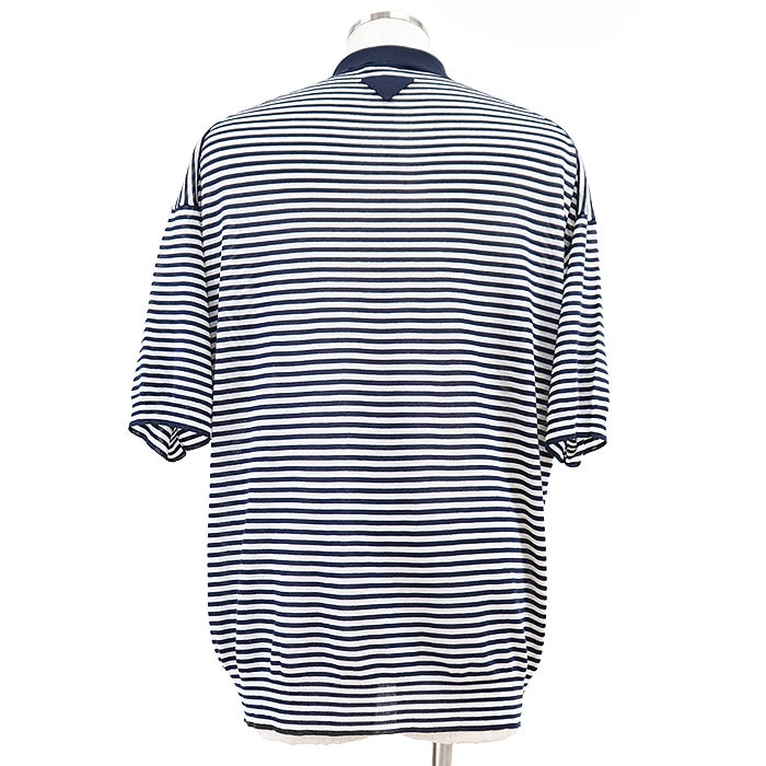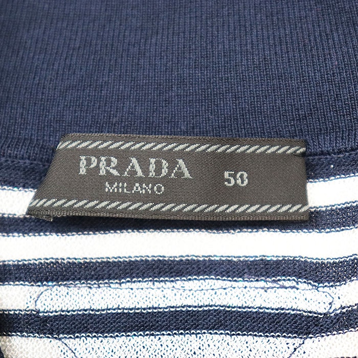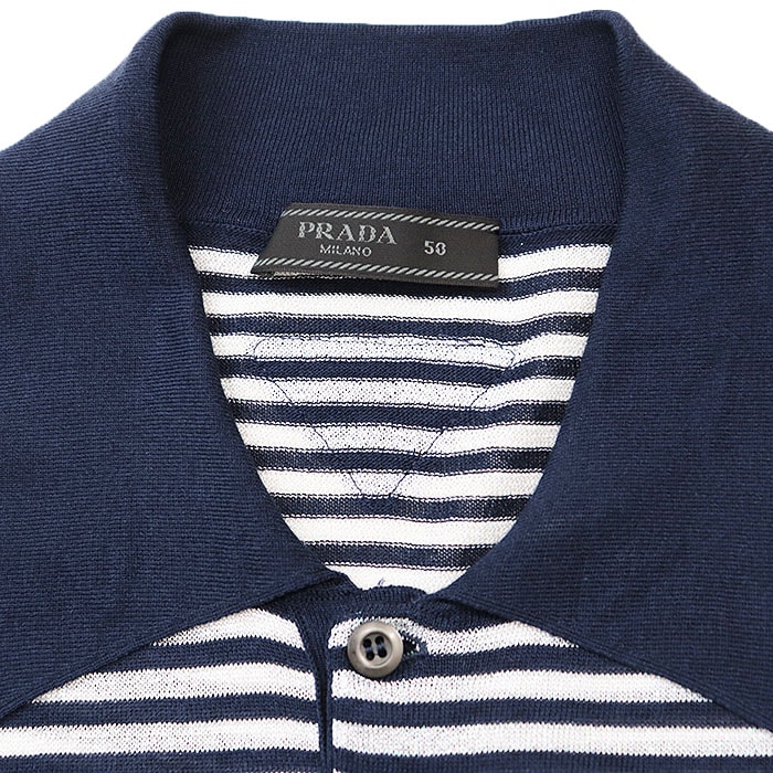 【シリーズ】PRADA プラダ ポロシャツ 2022年製 ニット メタルファイバー シアー マリン ボーダー トップス メンズ 50 メタリック白 紺 伊製