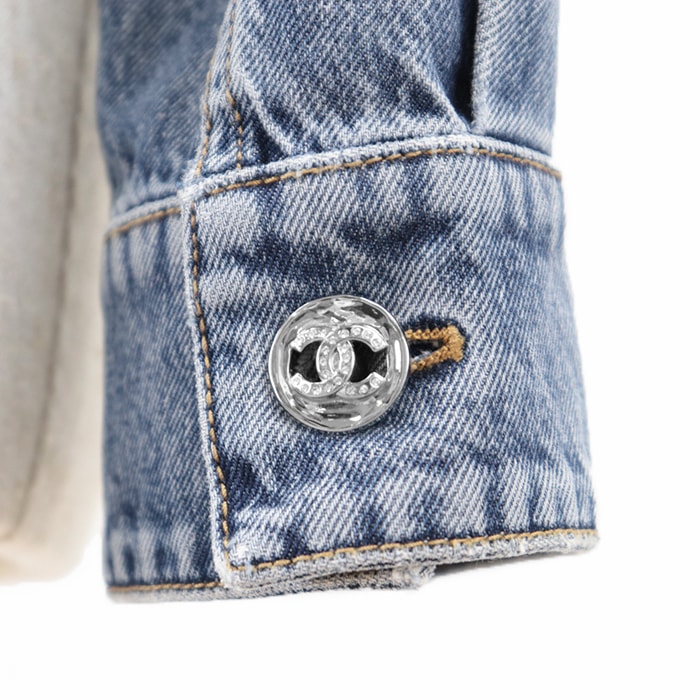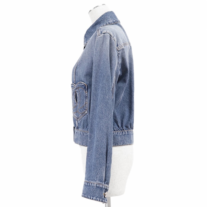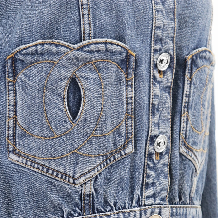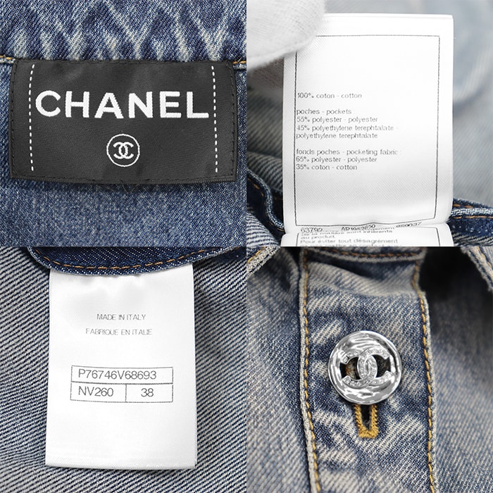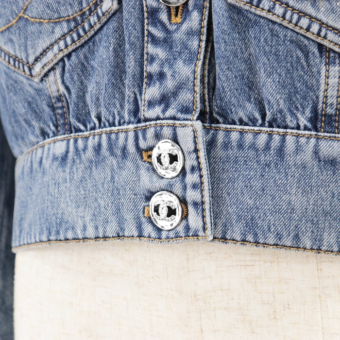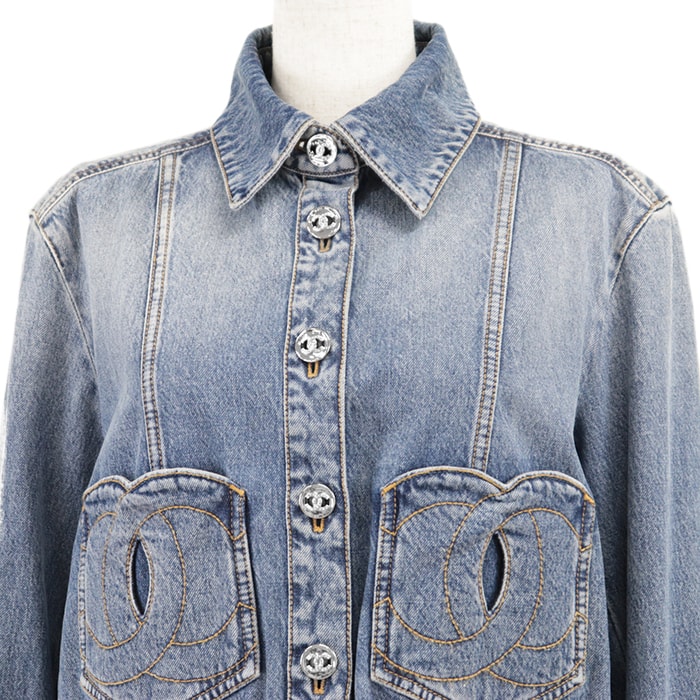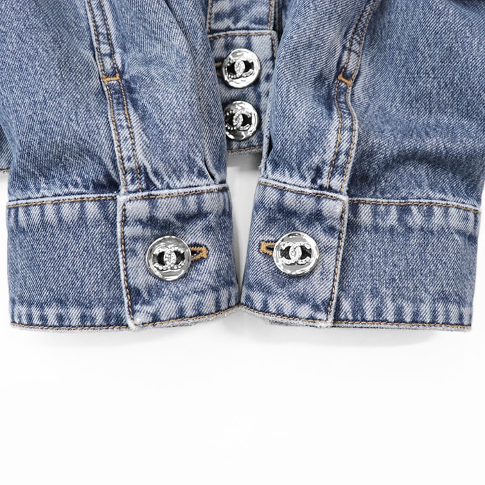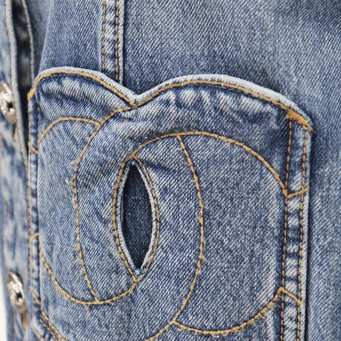【シリーズ】CHANEL シャネル デニムジャケット P76746 COCOマーク ポケット & ボタン クロップド アウター レディース 38 ライトインディゴ