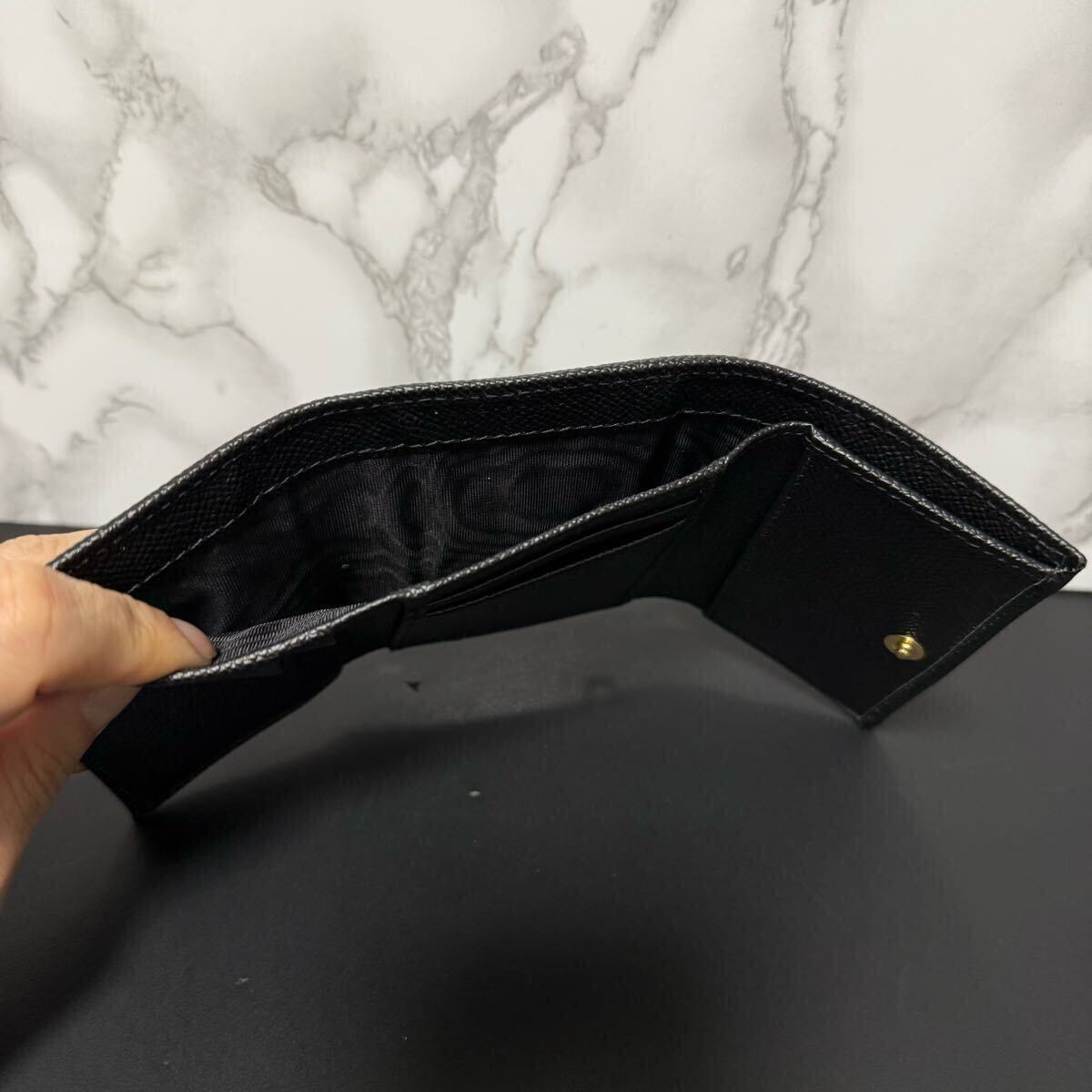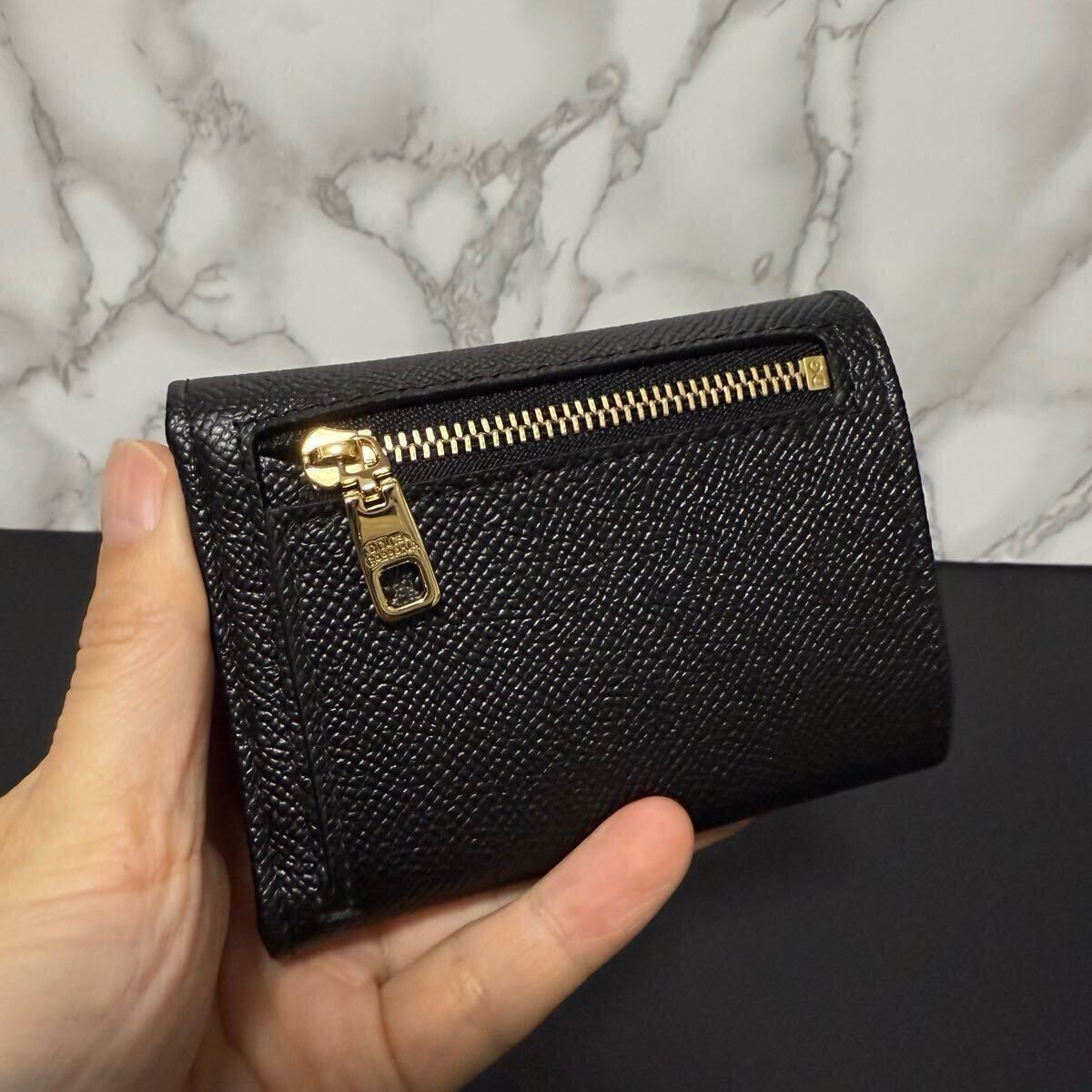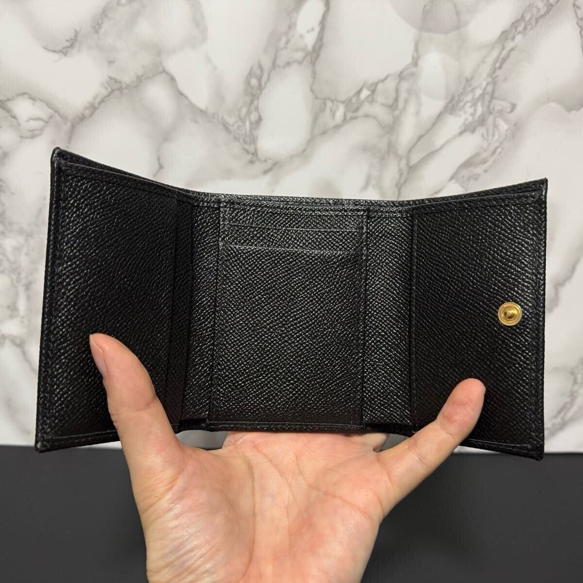 Dauphineカーフスキン ロゴプレート コンパクト ミニ ウォレット ブラック