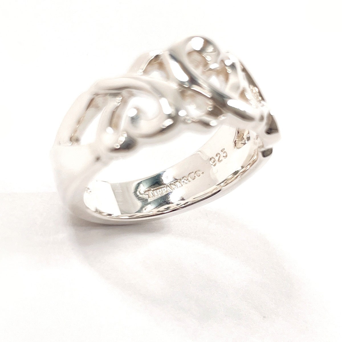 ティファニーを代表する「ラビングハート」モチーフを連ねた、上品でロマンティックなリング。滑らかな曲線が織りなすハートデザインは、愛と優しさを象徴し、指先に華やかな輝きを添えます。