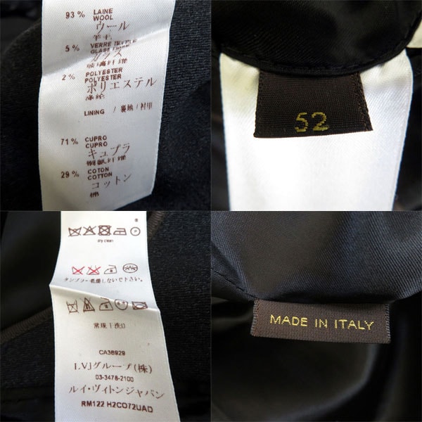 着丈108.5cm・肩幅46cm・胸幅58cm・袖丈66.5cm 多少の誤差はお許しください。 素材:表地:ウール93%ガラス5%ポリエステル2% 裏地:キュプラ71%コットン29% ヴィトンのウールブレンドのチェスターコートです。上質なウールを使用したフォーマルなチェスターコートです。 ルイ・ヴィトン福岡で購入・付属品は無し
