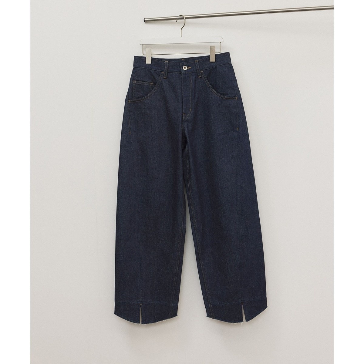 ベーシックな5ポケットデニムを、少しずつバランスを崩して今っぽく仕上げ、汎用性のあるデザインに落とし込んだ万能なデニムパンツ。