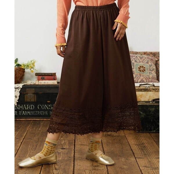 シルク キュロット レディース レース付き ロング丈 M~LL シルク100% オーバーパンツ 膝下 ペチパンツ ペチパン ペチコート 女性 下着 肌着 スカートインナー 静電気 透けない 冷え取り 通気性 スラックス下 敏感肌 快適 肌に優しい (送料無料)