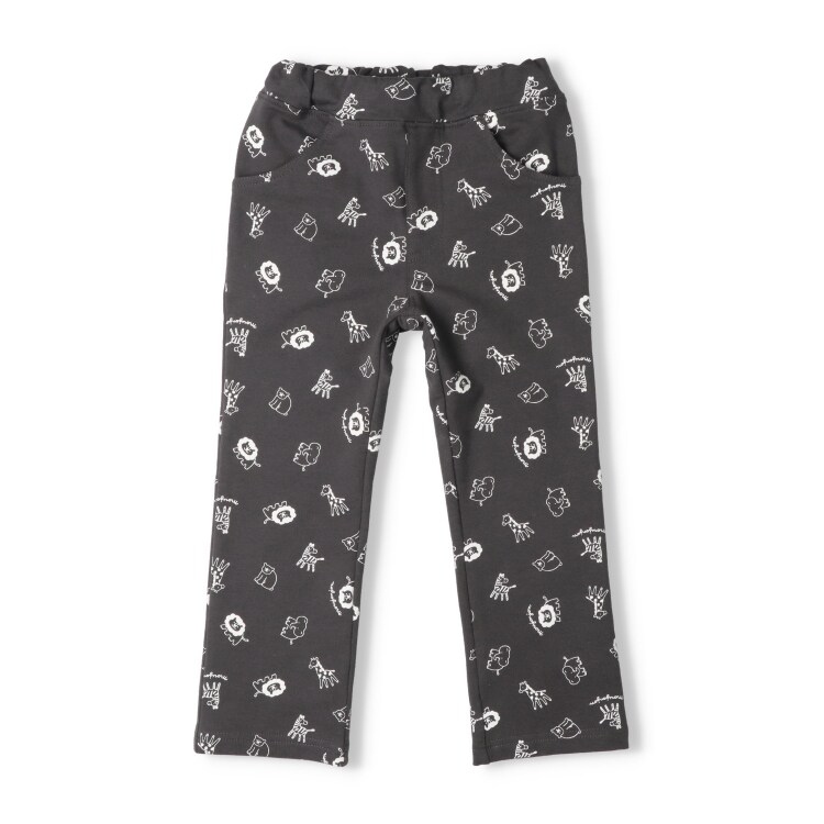 トレーナーよりは薄手、Tシャツよりは厚手のミニ裏毛素材が丁度いい。ストレッチもきいているので履かせるのも楽ちんで、動きやすそう!!色々な動物の総柄プリントがムージョンジョンらしくて可愛い!デイリー使いにオススメな長パンツ、長ズボン。【アイテム】シンプル ベーシック 無地 カジュアル お洒落 オシャレ かっこいい かわいい 可愛い 普段着 お外着 お外遊び着 デイリーウェア お出かけ着 ロング丈 長丈 長ズボン フル丈 ボトムス 子ども こども 男児 男の子 ボーイズ キッズ ベビーサイズ トドラーサイズ 幼稚園 保育園 小学校 通園 通学 小学生 2025年秋冬物新作 丸高衣料 ブラック 黒色 ブラウン 茶色 ムージョンジョン
