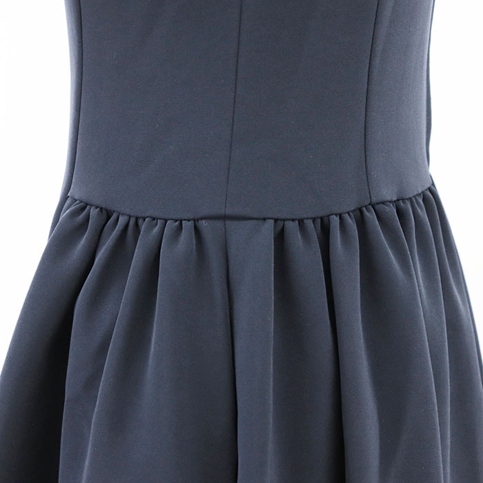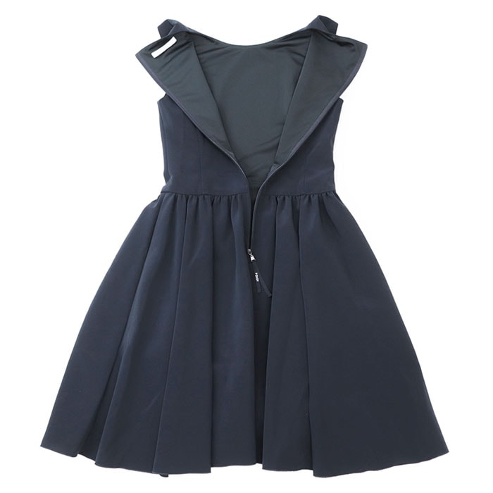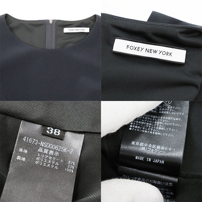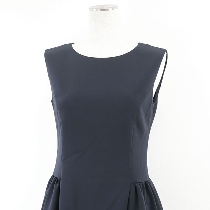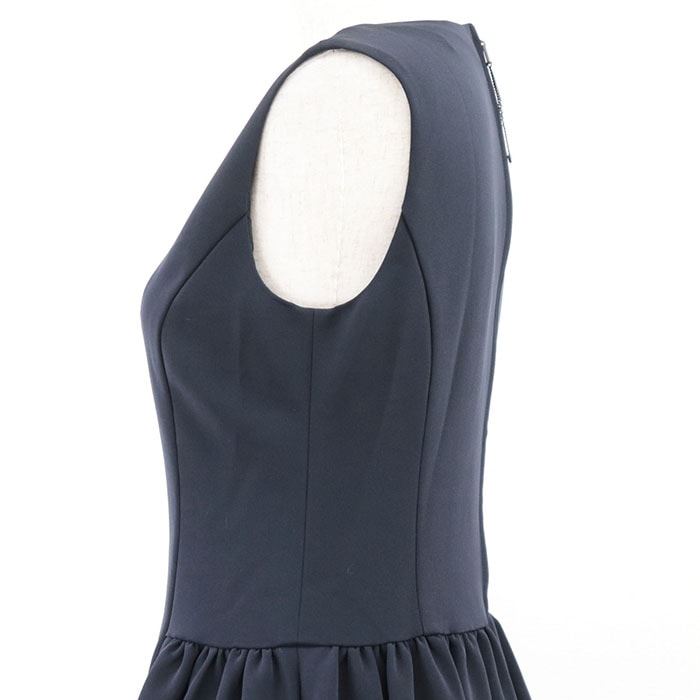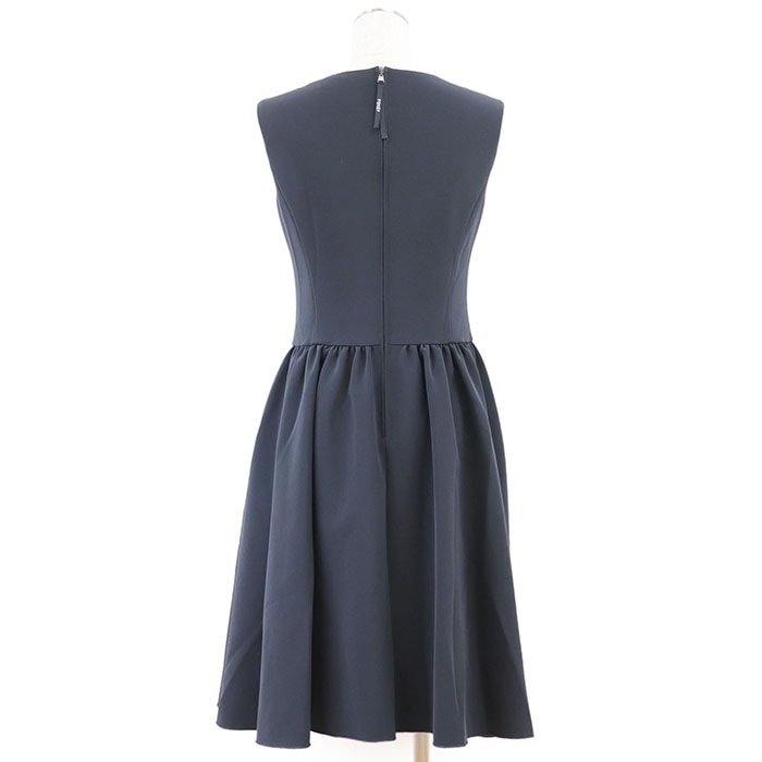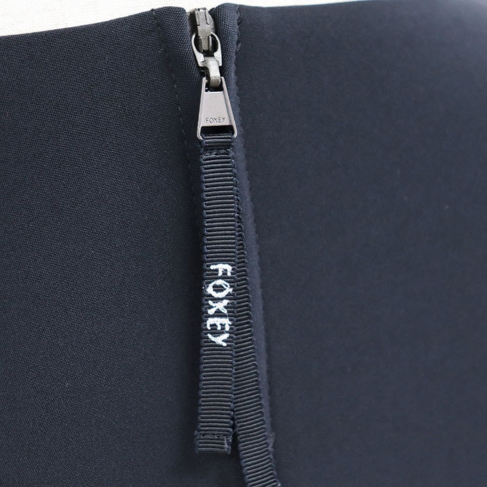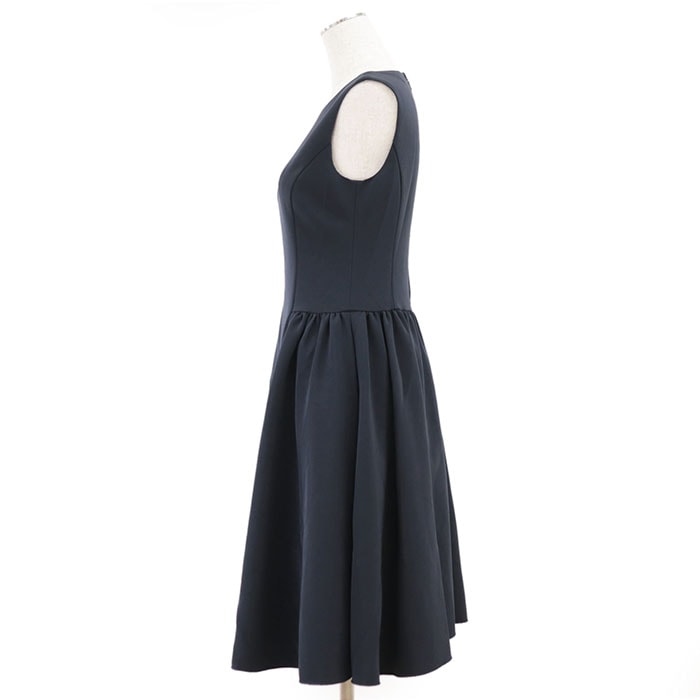 【シリーズ】FOXEY フォクシー ワンピース ノースリーブ 41673 ロゴ ファスナー フレア ギャザー Aライン ラウンド レディース 38 紺 日本製