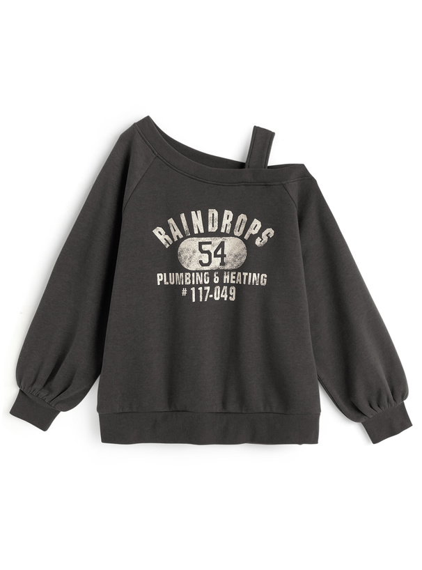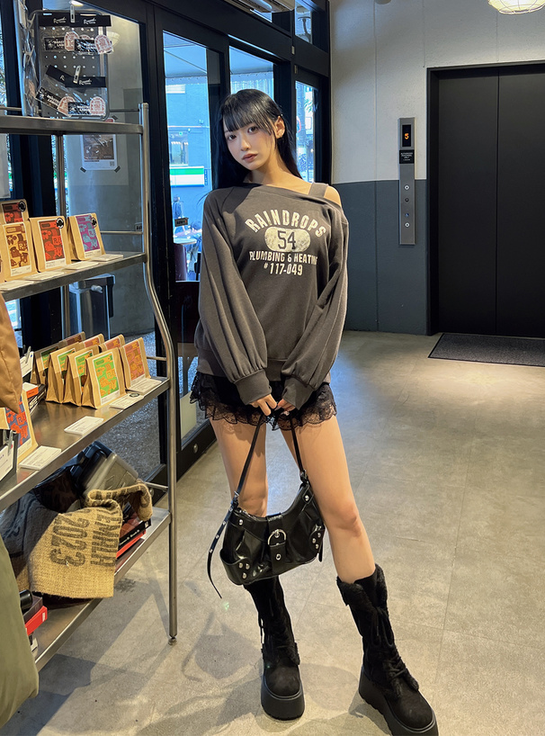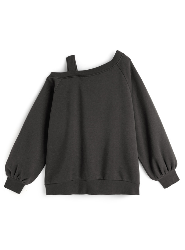 アシンメトリーなワンショル仕様が、抜け感のある印象のトップス。