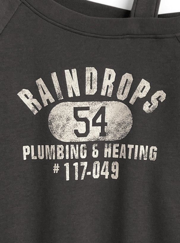 胸元のヴィンテージ感漂うかすれたロゴプリントがアクセント。