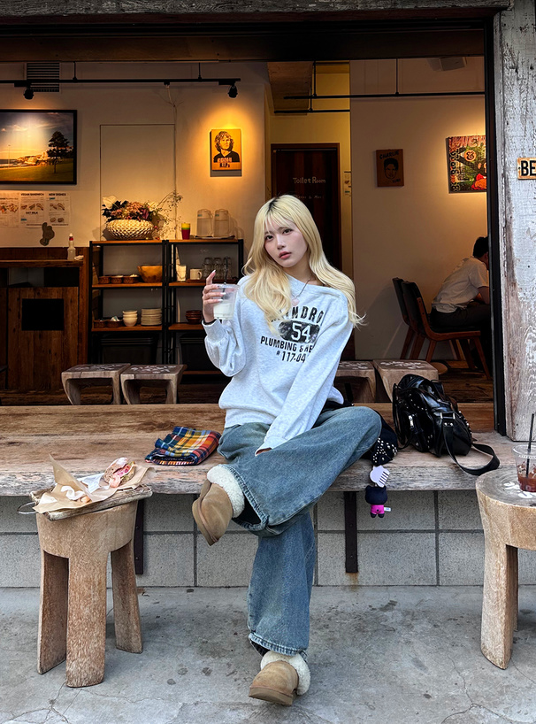 ルーズなデニムでカジュアルに、ミニスカートを合わせた甘めコーデにも◎。