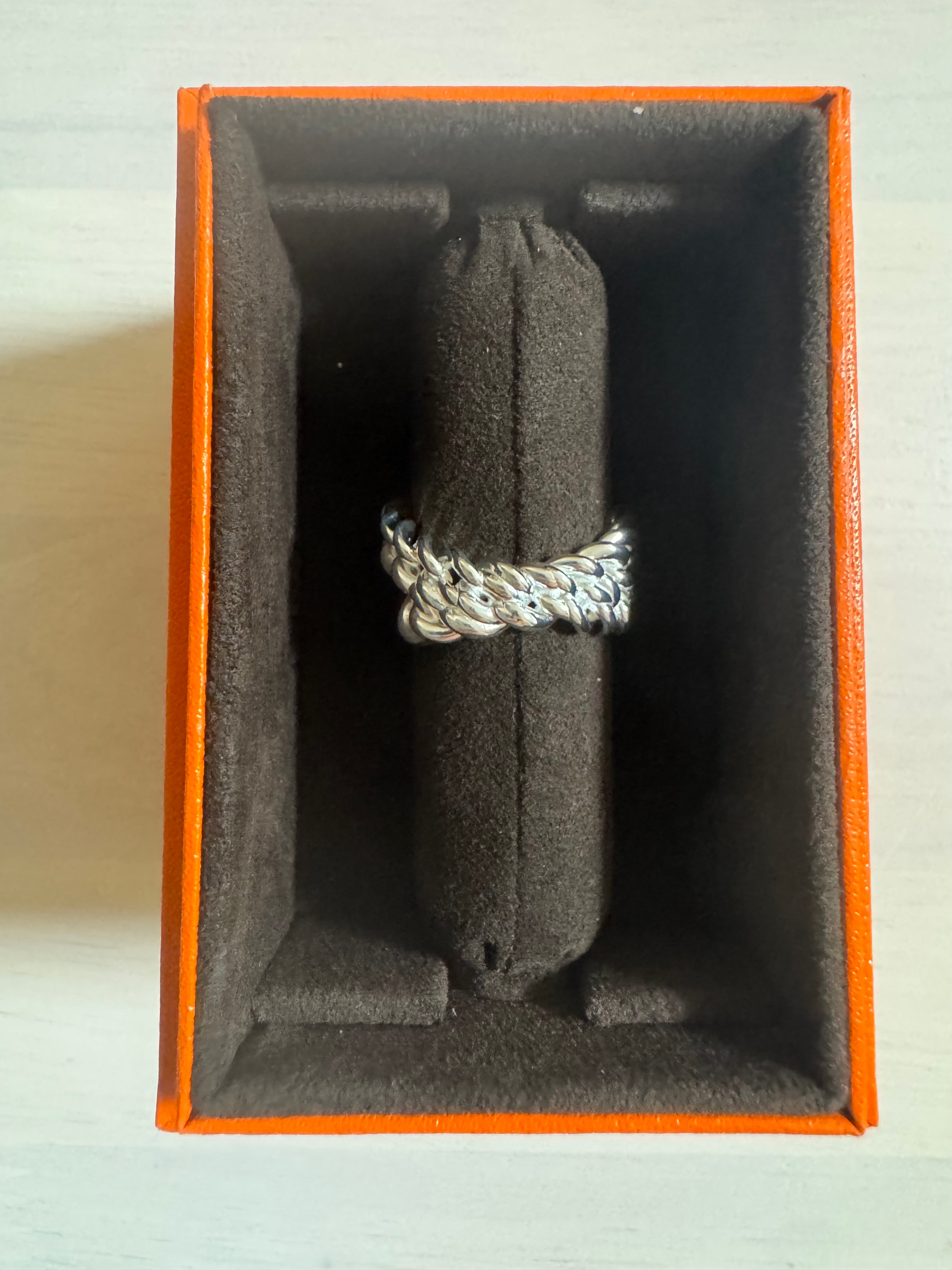 2025年11月に国内エルメス正規店で購入したばかりのエルメスの新作のシルバーリングです。