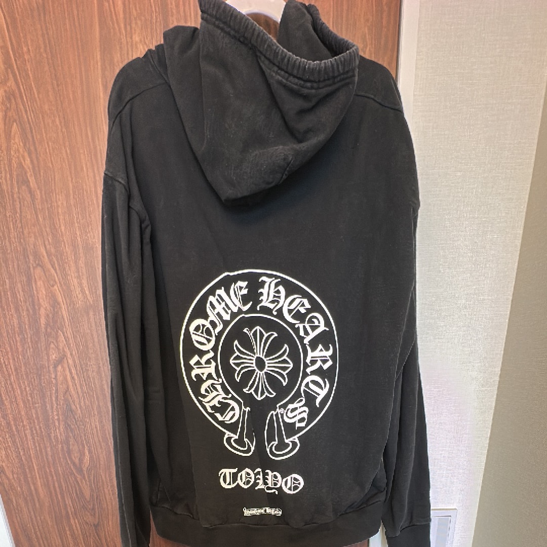 クロムハーツの青山で購入したパーカーです。昨年購入して、着用しています。洗濯してるので若干毛羽立ち、フェードはあるためお安めに販売します。
