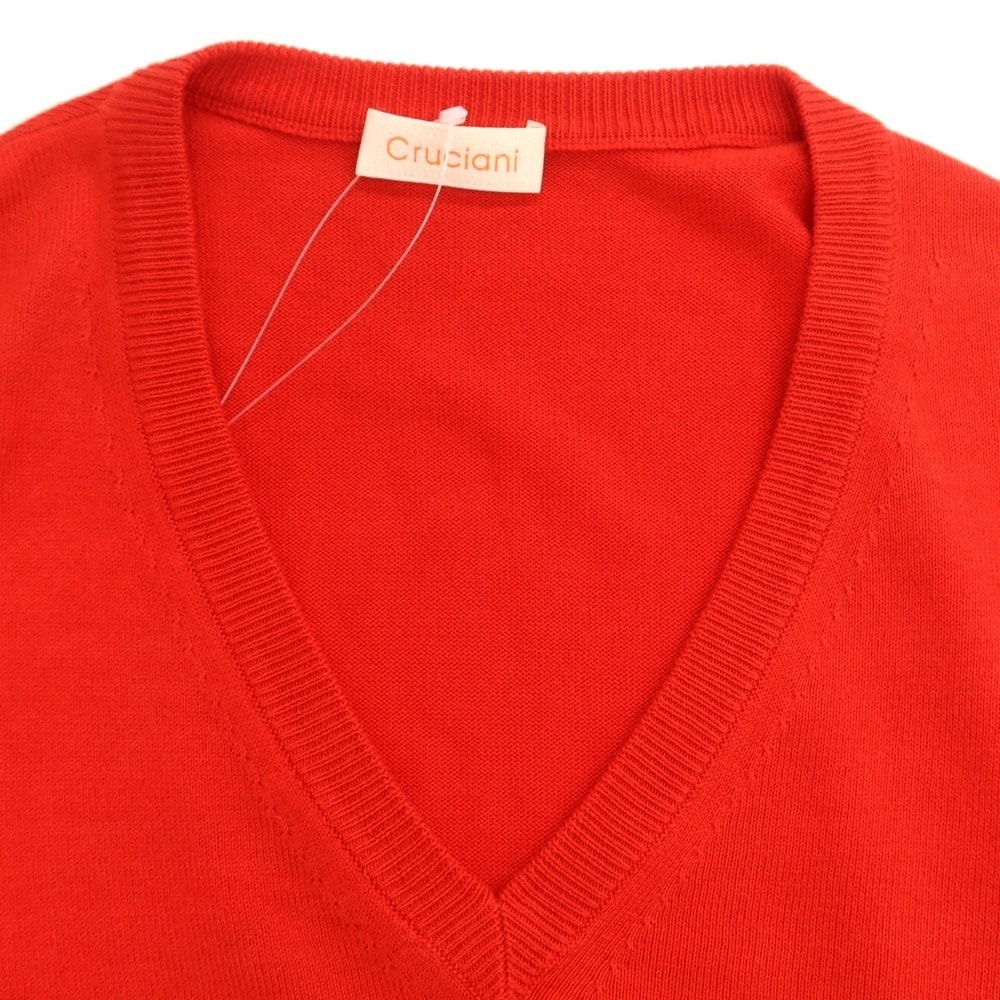 柔らかく滑らかなタッチのハイゲージコットンニット地を使用した、Vネックプルオーバーニットです。明るく鮮やかなレッドカラーが着こなしに華やかさを添え、シンプルながらも存在感のある一枚。すっきりとしたVネックが胸元を上品に見せ、シャツとのレイヤードスタイルにも好相性です。フィット感のあるシルエットでジャケットインにも使いやすく、オン・オフ問わず幅広い着こなしがお楽しみいただけます。
