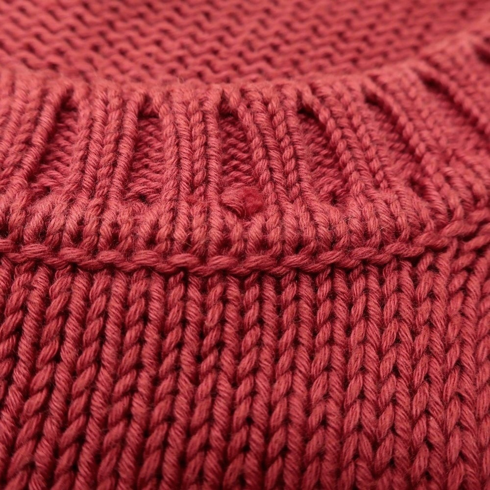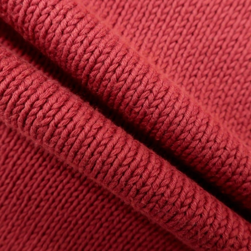 程よい厚みの柔らかなミドルゲージコットンニット地を使用した、クルーネックプルオーバーニットです。ほどよい厚みの甘く編まれたニット地で、春秋は一枚着として、冬はインナーとしても活躍します。品のある落ち着いたレッドカラーが、装いに華やぎを添えてくれる万能な一着です。シンプルながらも上質さが際立つ、大人のためのニットウェアです。