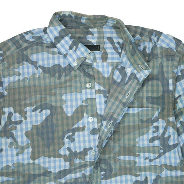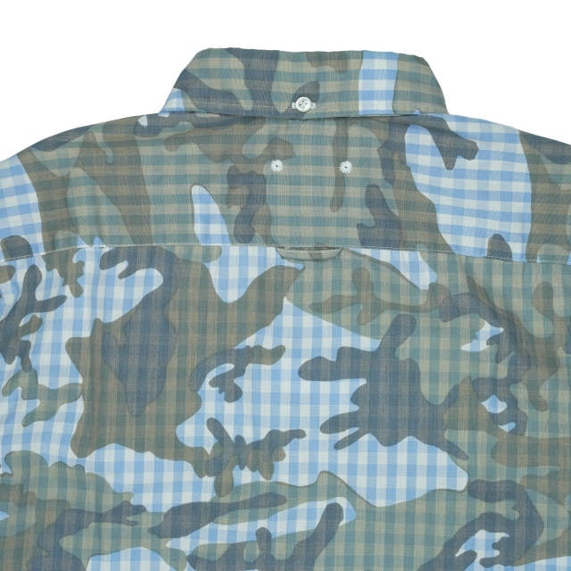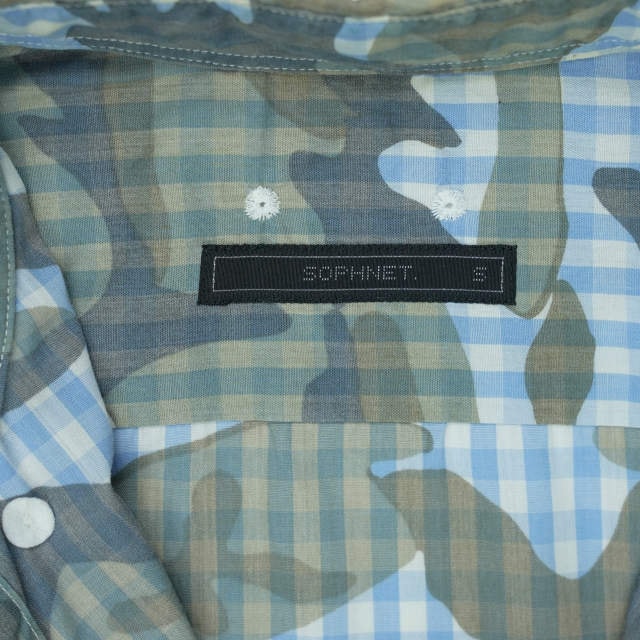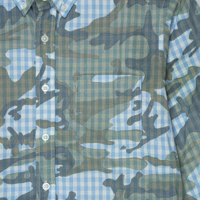 ギンガムチェックの上にカモフラージュ柄をオーバープリントしたSOPHNET.の代名詞的な一枚。
