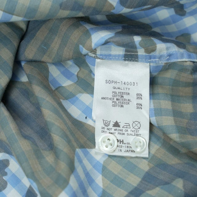 SOPHNET. ソフネット CAMOUFLAGE OVER PRINT B.D SHIRT カモフラージュオーバープリントBDシャツ SOPH-140031 S ブルー チェック j3787