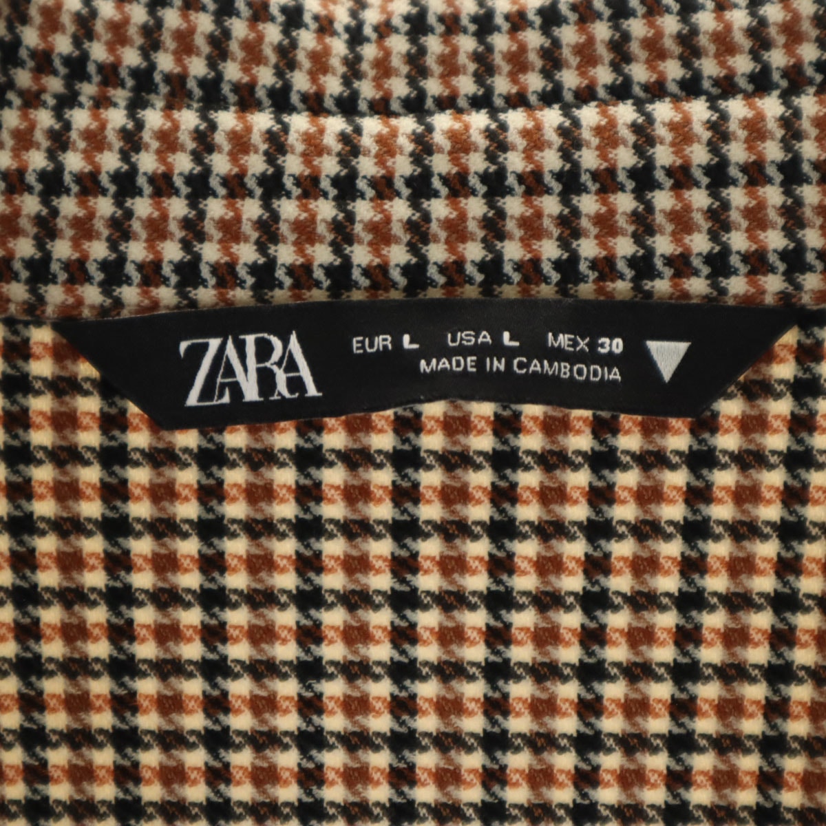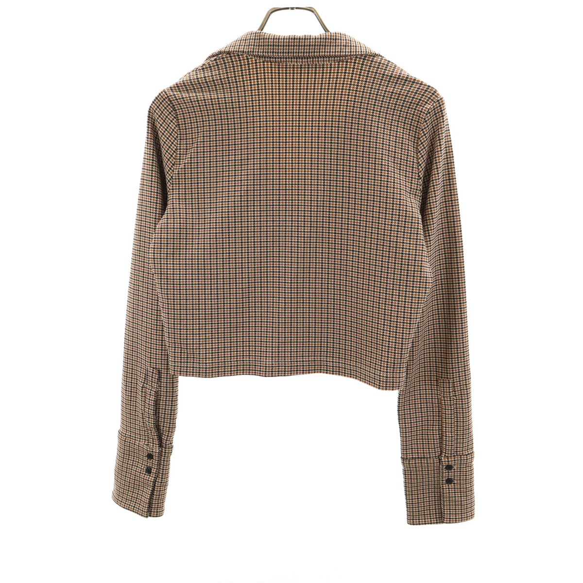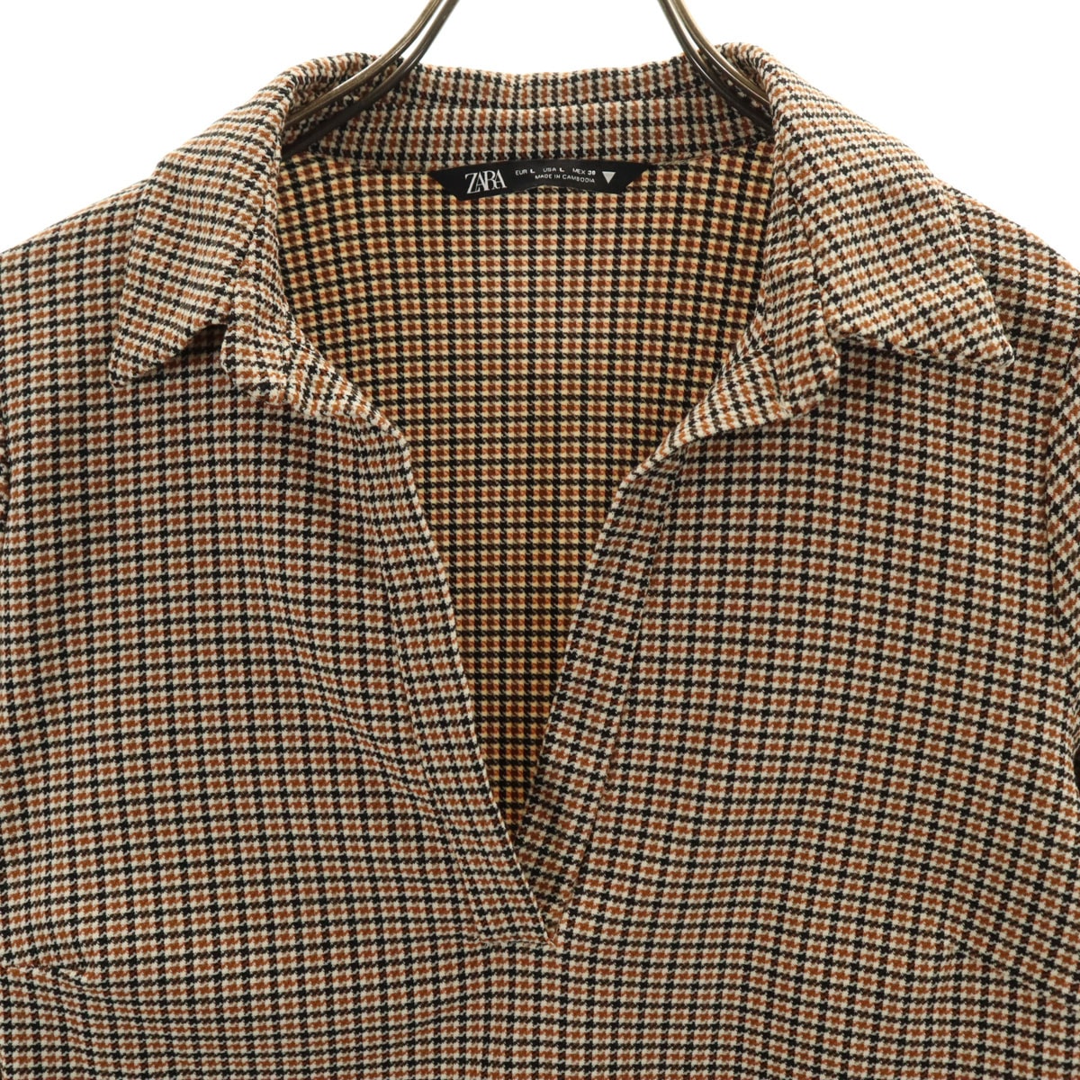 ザラ チェック柄 長袖 Vネック シャツ L ブラウン系 ZARA ショート丈 レディース