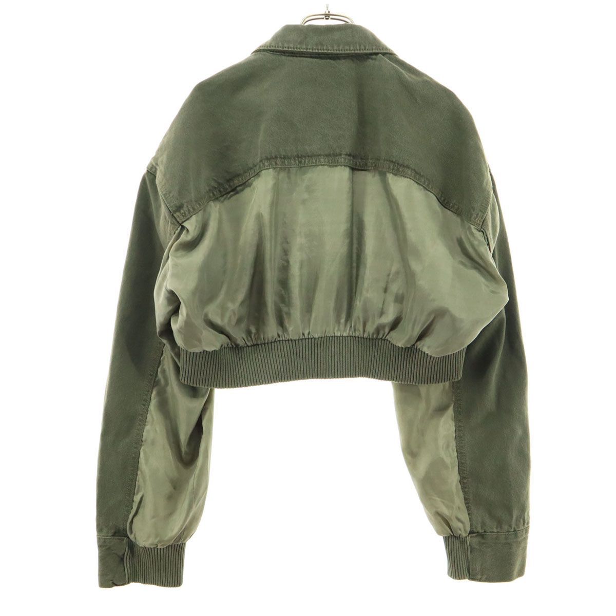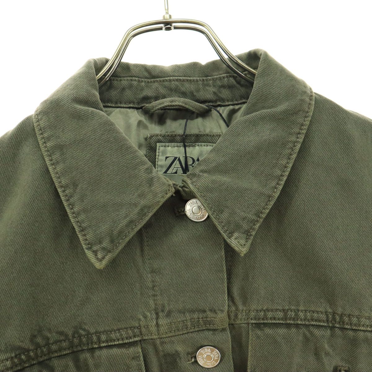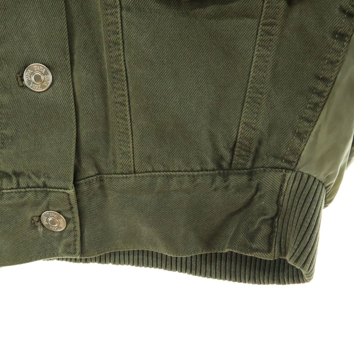 ザラ 長袖 ショート丈 切替 デニムジャケット XS グリーン ZARA レディース