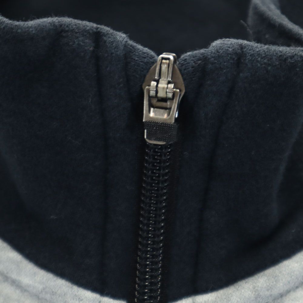 全体的に色褪せ、所々に茶汚れ、ロゴにホツレ、裏起毛に毛玉あり。ファスナースライダー欠損。ご理解の上ご購入をお願いいたします。