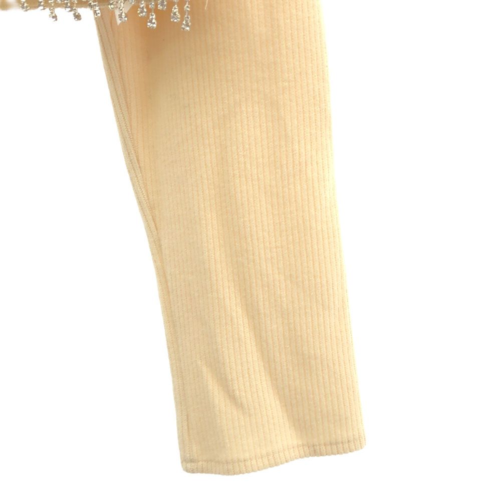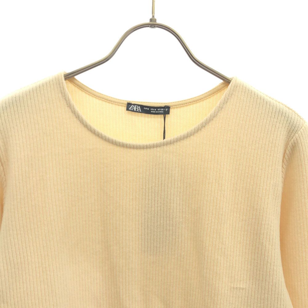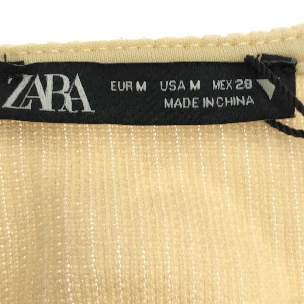 ザラ 未使用 長袖 ラインストーン付 ショート丈 ニット M アイボリー ZARA タグ付き レディース