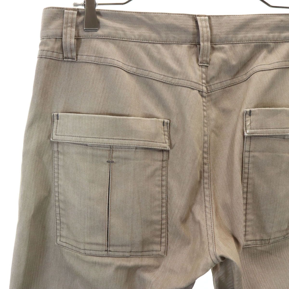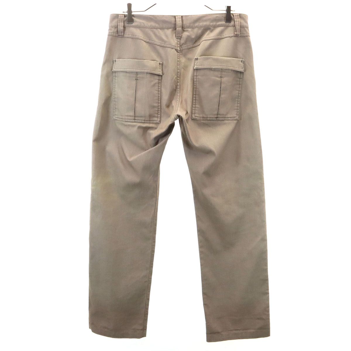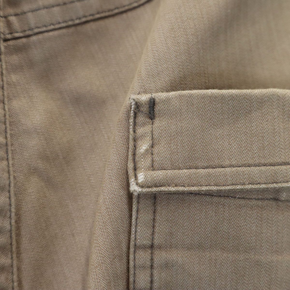 全体的に色褪せ、前ポケット裏地に毛玉、後ろ身頃ポケットに擦り切れ破れ、裾周りに汚れあり。古着にご理解の上ご購入をお願い致します。