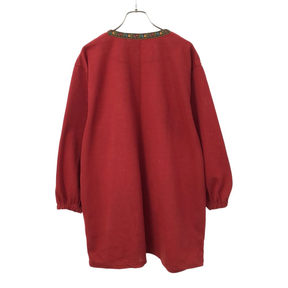 ケンゾー 90s 日本製 オールド 刺繍 花柄 長袖 カーディガン レッド KENZO 日本エプロン協会 割烹着 レディース