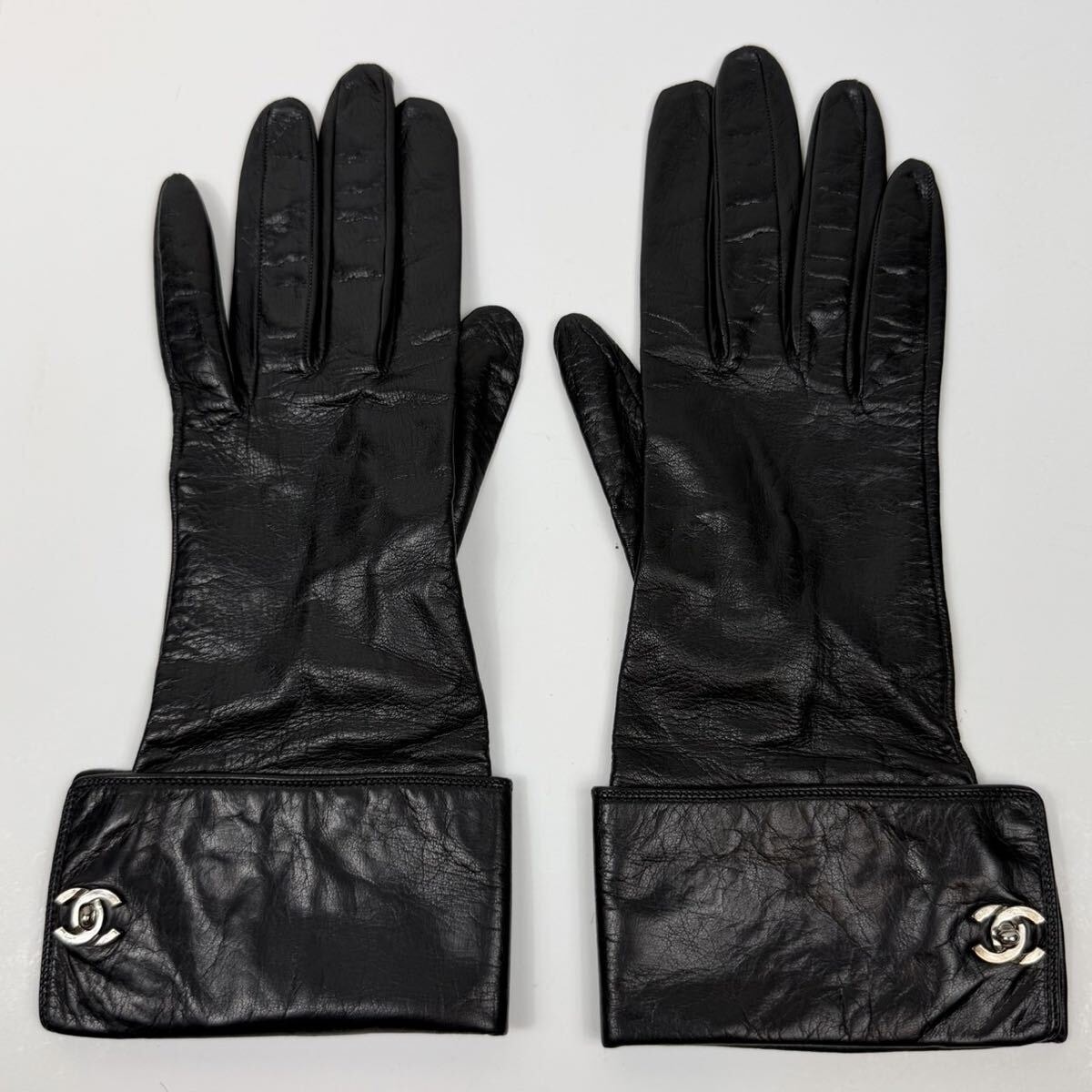 美品 CHANEL ターンロック レザー グローブ 手袋 シャネル