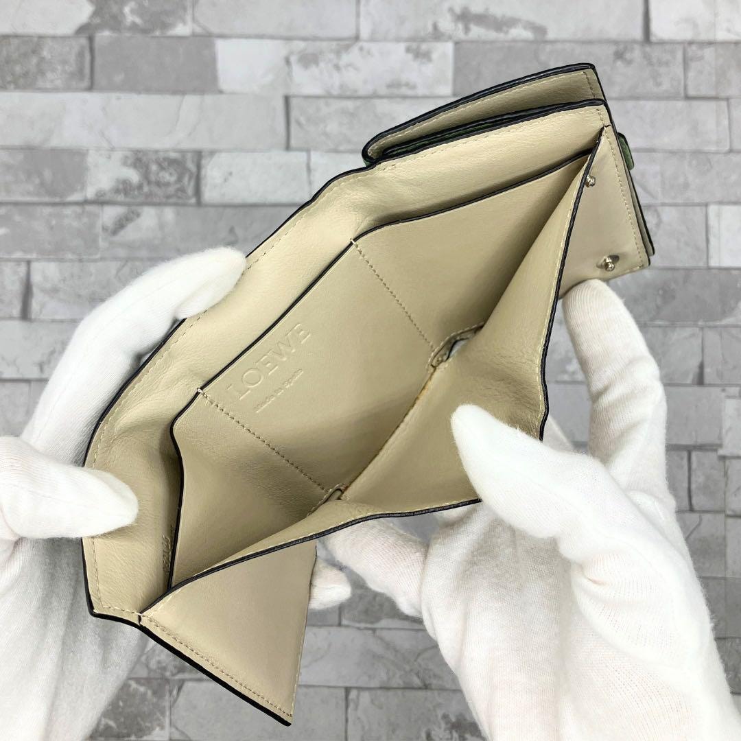 ロエベLOEWEの三つ折り財布は、柔らかなグレインレザーで傷が付きにくく、長く愛用できるのが魅力です。