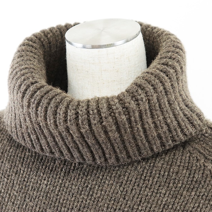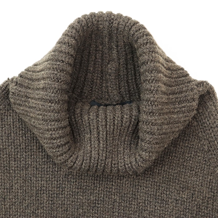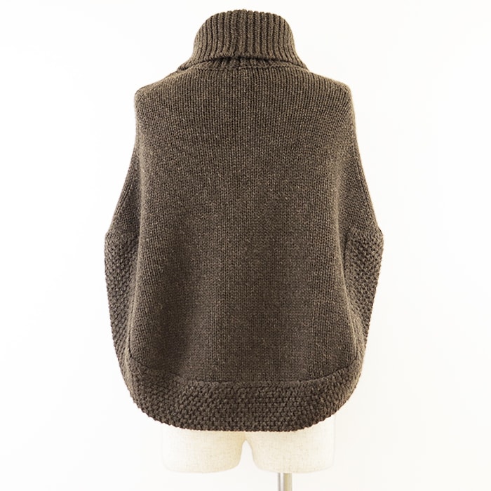 【アイテム】キャメル100% レザーインターロッキング パッチ タートルネック ポンチョ ニット