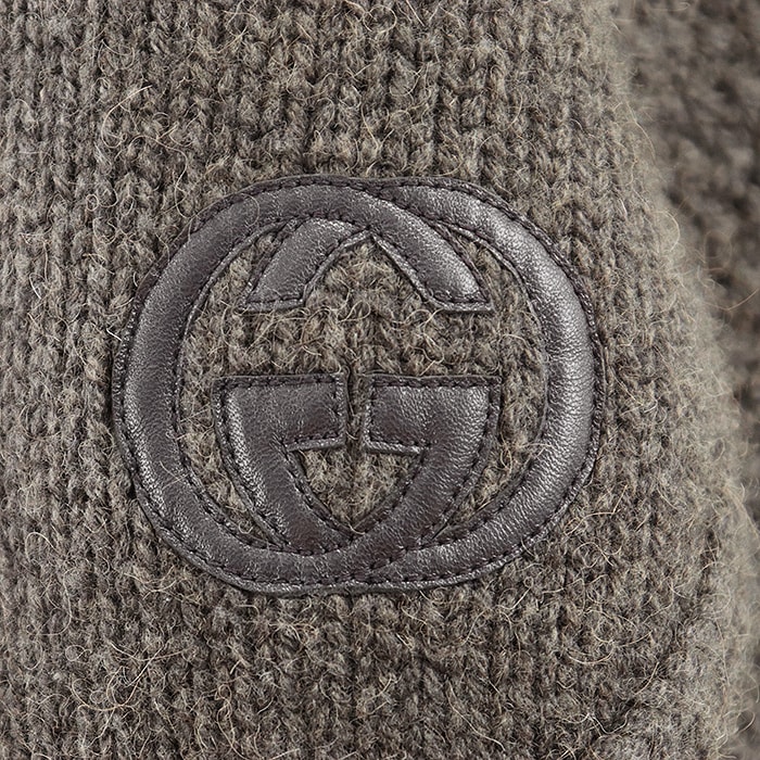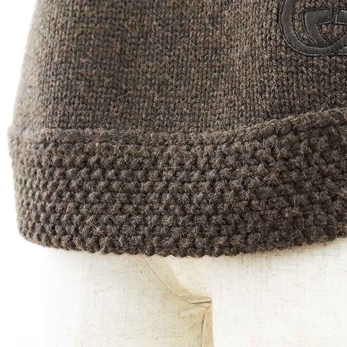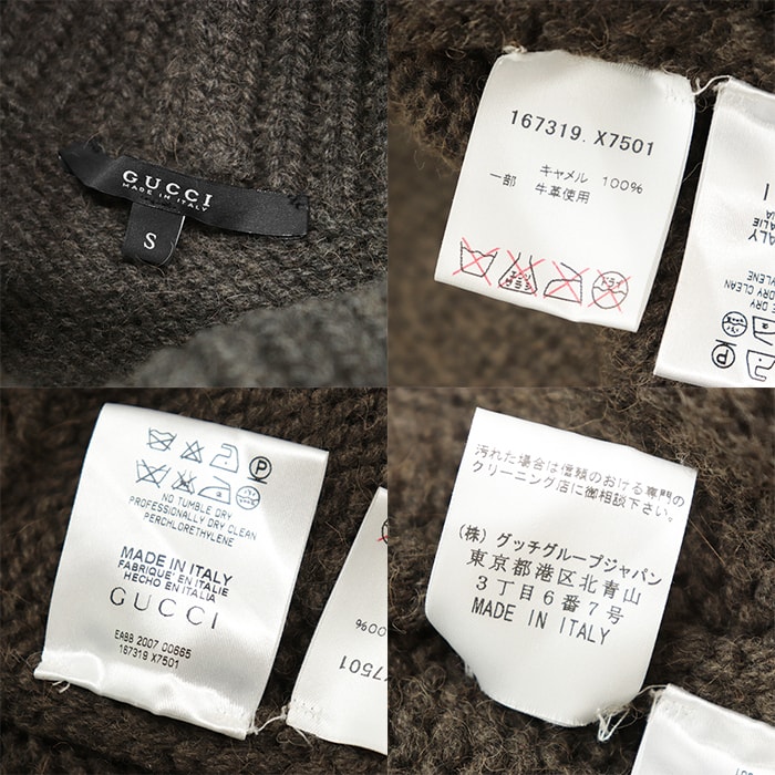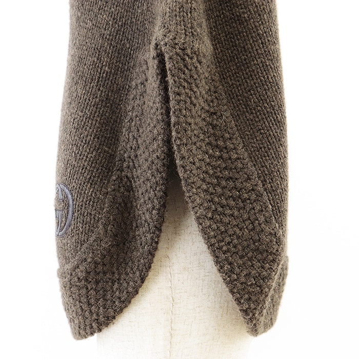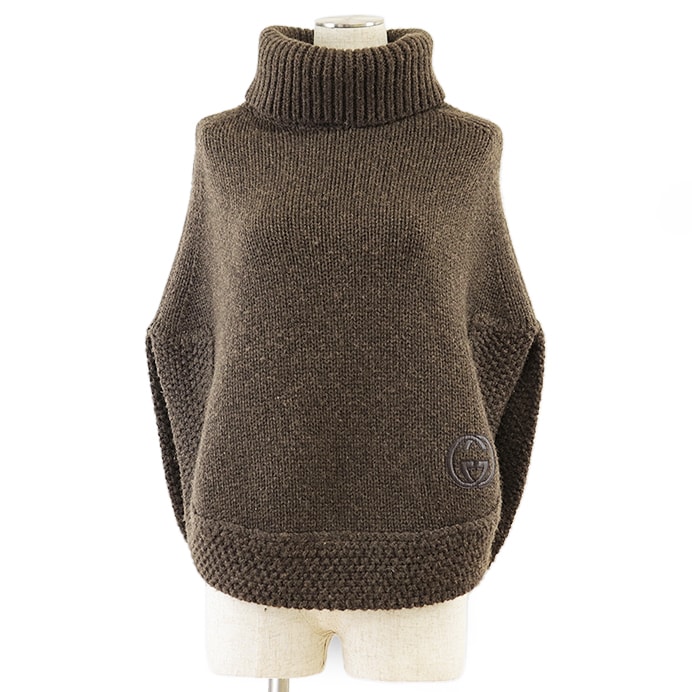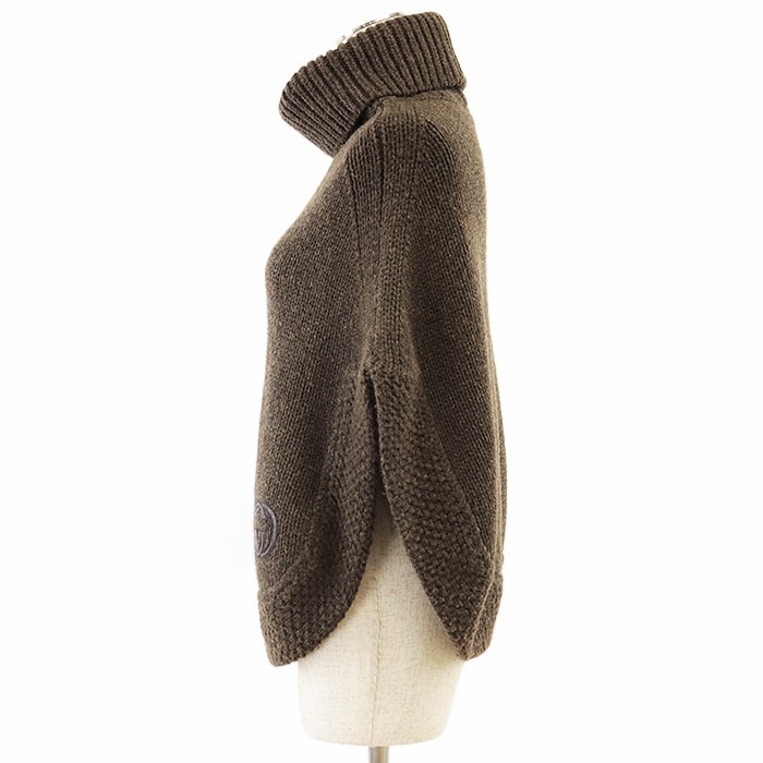 【シリーズ】GUCCI グッチ ポンチョ ニット 2007年 キャメル100% レザー GG パッチ タートルネック レディース S ダークブラウン 伊製