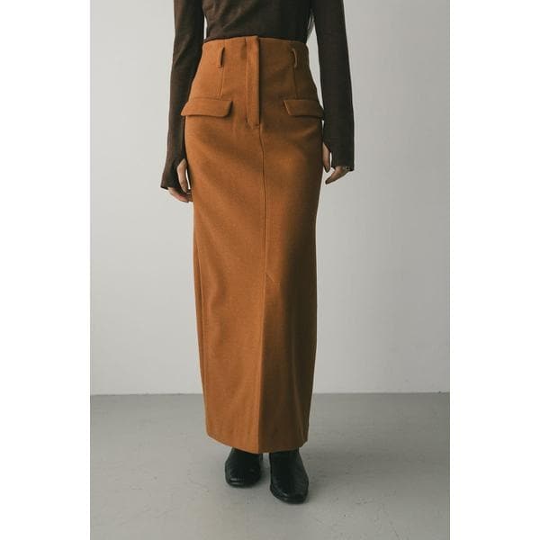 IVO,ORG:モデル身長170cm(Mサイズ着用)BRN:モデル身長178cm(Mサイズ着用)すっきりとしたナローシルエットと実用性とアクセントを兼ね備えたフロントポケットをデザインがポイントのスカート。センタースリットが抜け感を与え、足さばきの良さとスタイルアップ効果をかなえます。シーズン問わず取り入れやすく、合わせるトップス次第で印象を自在にアレンジできる1枚。ミニマルでありながら存在感のあるデザインが、日常のスタイリングにさりげなくモード感をプラスしてくれます。ストレッチなし、透け感なし。【お手入れ方法】手洗い可