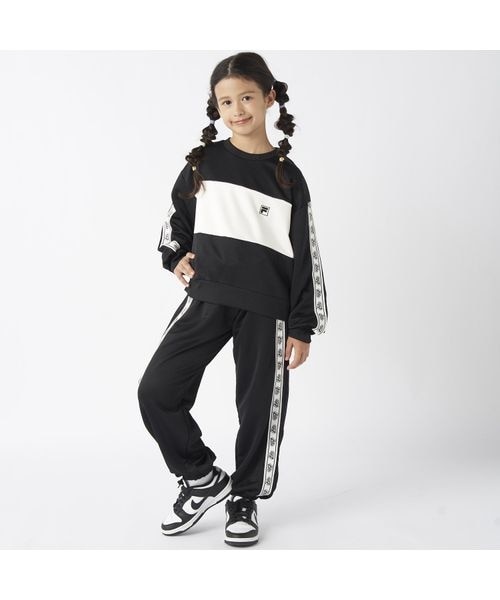 袖に大胆な太めロゴラインテープをあしらった、存在感抜群のモノクロスウェットトップスが登場! ストリート系・ダンス系ファッション好きなキッズにぴったりな、トレンド感あふれるデザインです。 カラーはモノトーンでクールにまとめつつ、インパクトのあるロゴラインがスタイリングのアクセントに。 ゆったりとしたサイズ感で動きやすく、ダンスや外遊び、普段着にも大活躍! 肌ざわりの良い裏毛スウェット素材で、ロングシーズン快適に着用可能。 シンプルだけど「ちょっと差がつく」おしゃれを楽しめる1枚です♪