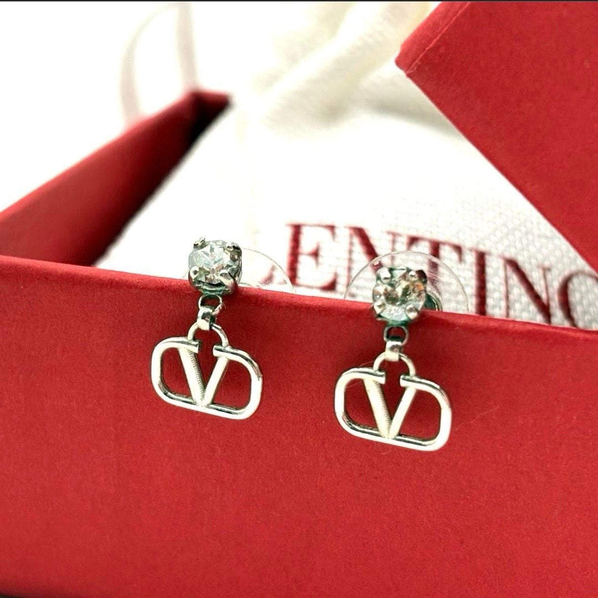 華奢なデザインながら、耳元でキラリと光るラインストーンと象徴的なVロゴが存在感を放つ人気モデルのピアス。