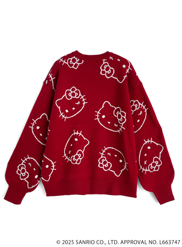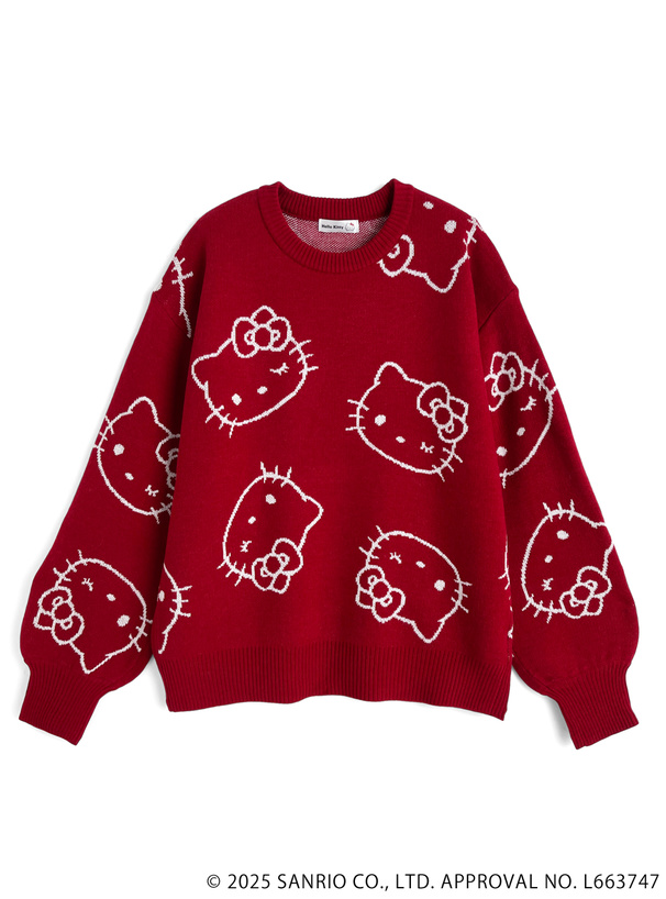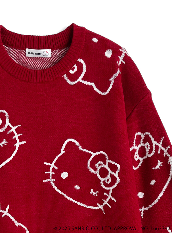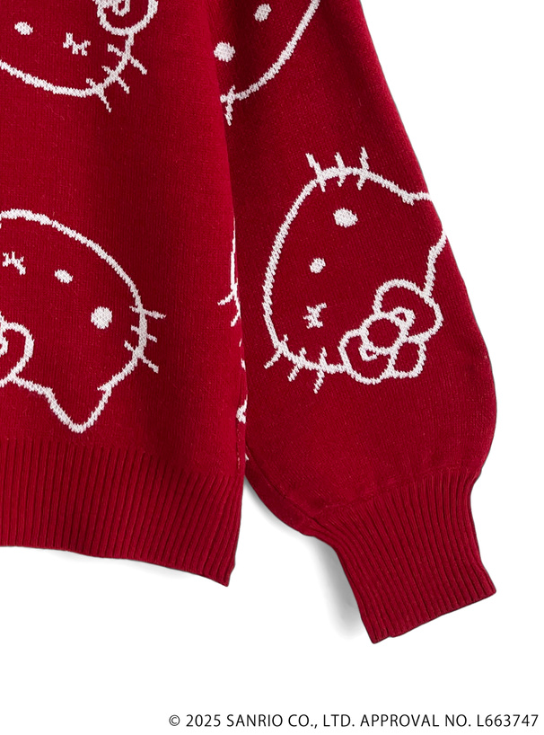 ハローキティ 総柄 ニット 赤◆キティ セーター レッド 長袖 レディース サンリオ