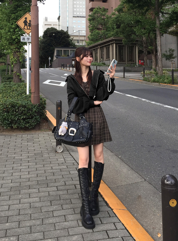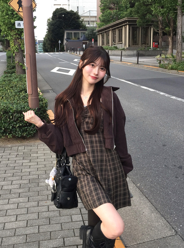 チェック柄フリルリボンシャツミニワンピース[dk1613]