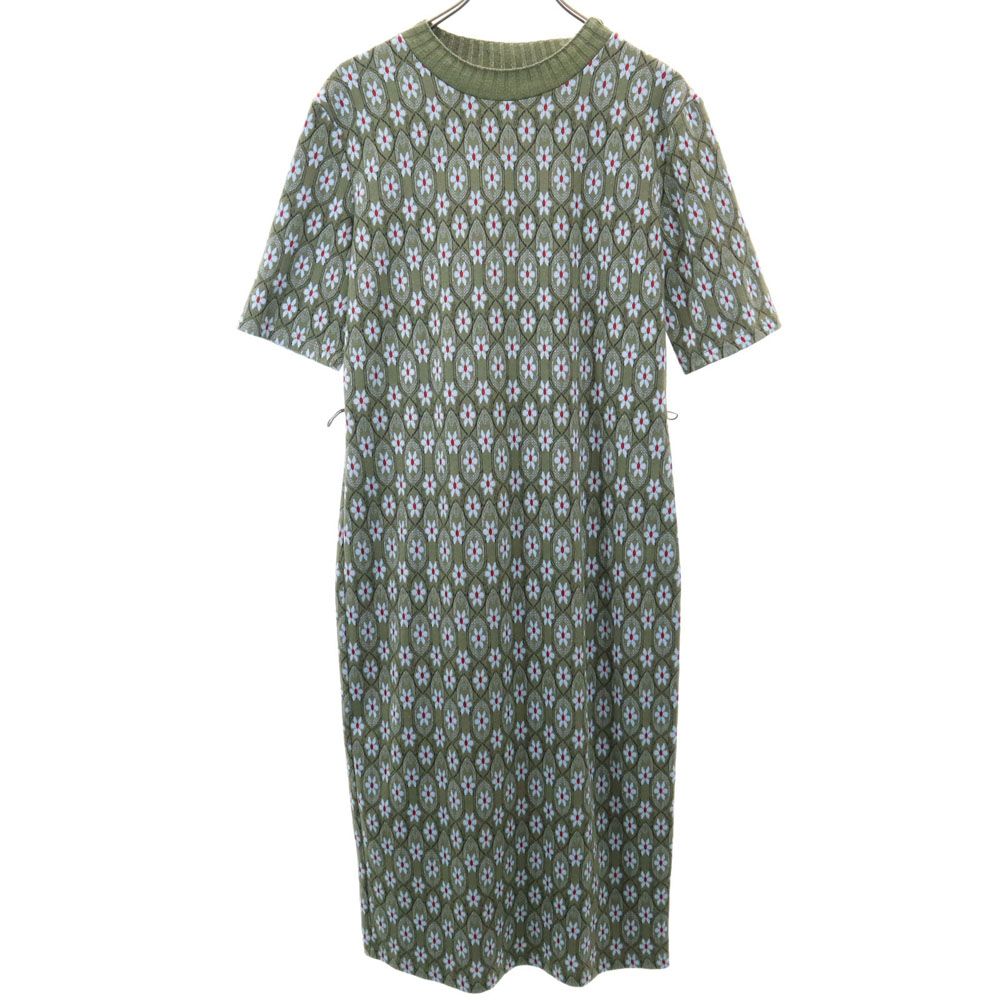 ザラ 総柄 半袖 ワンピース L グリーン系 ZARA レディース