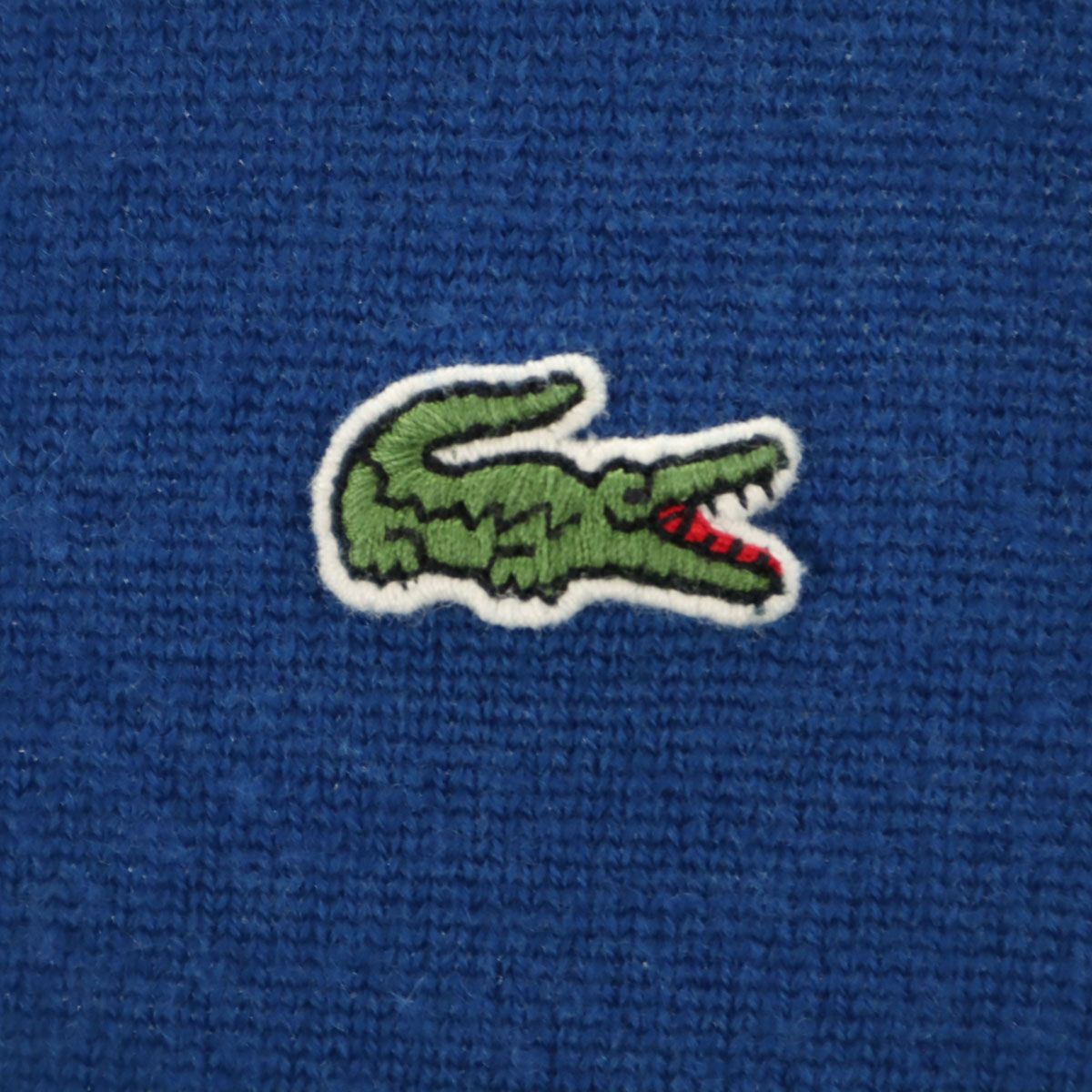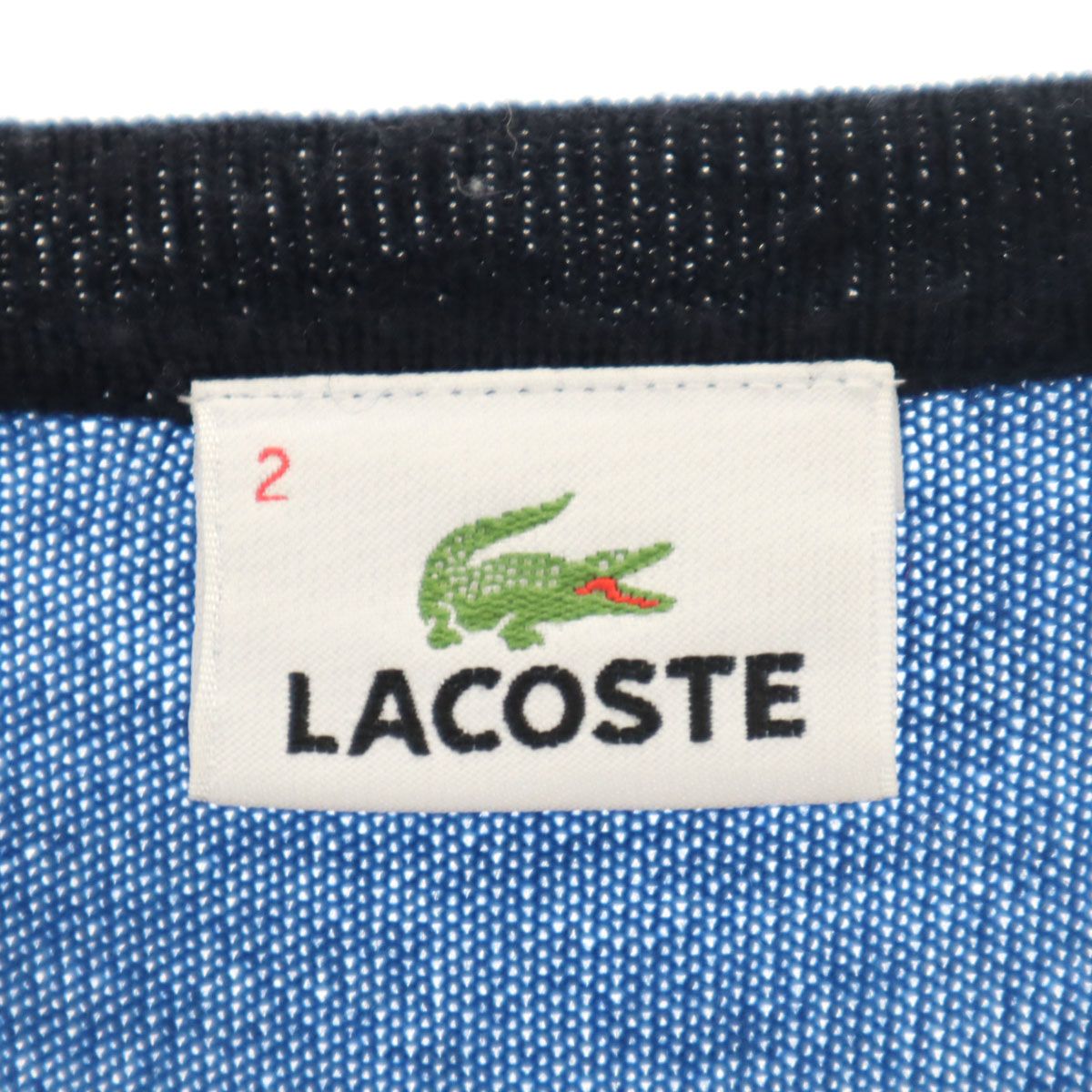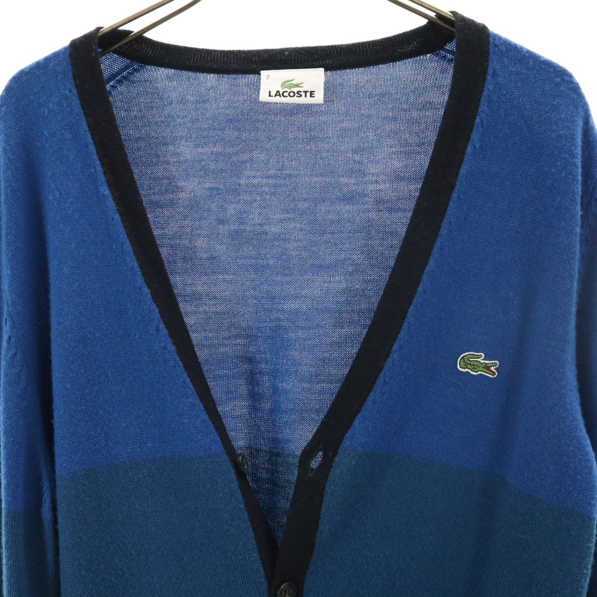 ラコステ ウール100% 長袖 Vネック カーディガン 2 ブルー×ネイビー LACOSTE メンズ