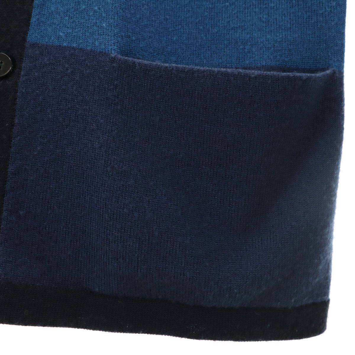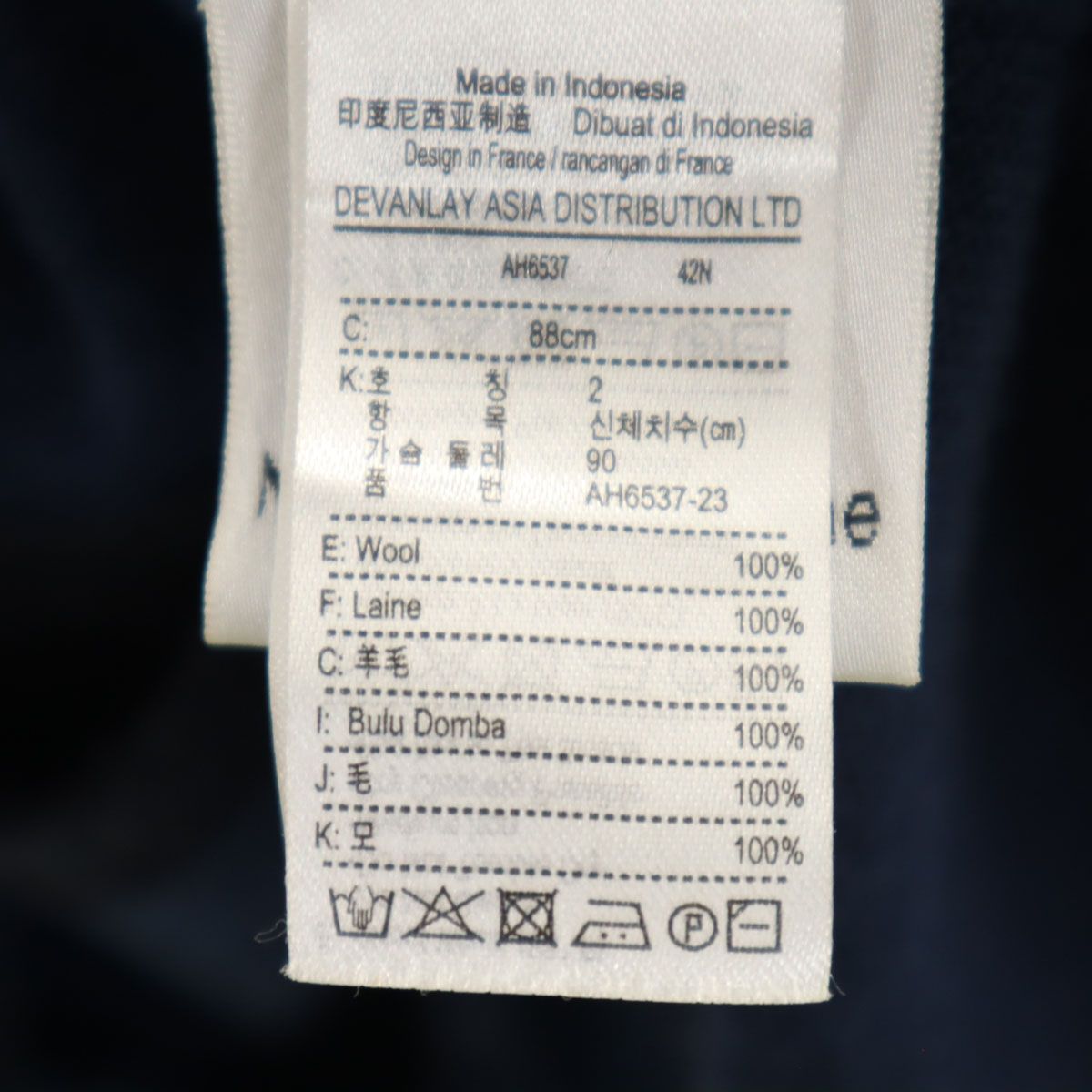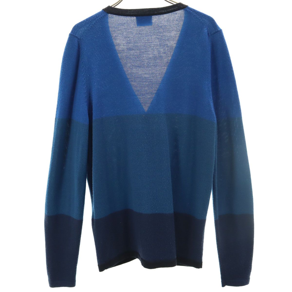 ラコステ ウール100% 長袖 Vネック カーディガン 2 ブルー×ネイビー LACOSTE メンズ