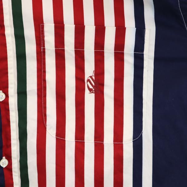 ノーティカ 90s オールド ボーダー柄 長袖 ボタンダウンシャツ L 紺×赤×白 NAUTICA メンズ