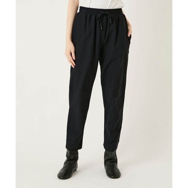 上質なメリルナイロン生地を採用した滑らかな表面感と穿き心地抜群のハイテンション素材。きれいなレッグラインを演出してくれる裾を絞ったジョガーライクなシルエットが魅力的です。ウエストゴム仕様でフィット感も良く、ドロストリボンがこなれ感あるアクセントに。プレーンな合わせやすいカラーリングで様々なスタイリングを楽しんでいただけます。
