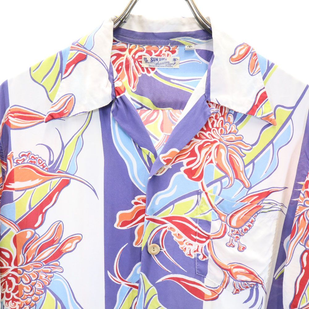 サンサーフ 総柄 半袖 レーヨン アロハシャツ S ホワイト系 SUN SURF メンズ
