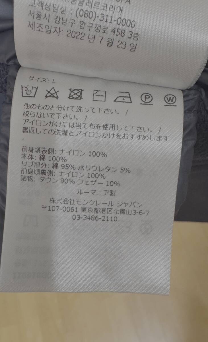 袖と背中がスウェット生地、ダウン地の前身頃、左袖にモンクレールのパッチがあります。全身ダウン地のいわゆるゴテゴテなモンクレールのダウンジャケットではないので秋冬に気軽に着用できます。購入金額は確か15万円弱くらいで、購入後ほとんど着る機会がなかったので目立つ汚れやほつれなどはありません。