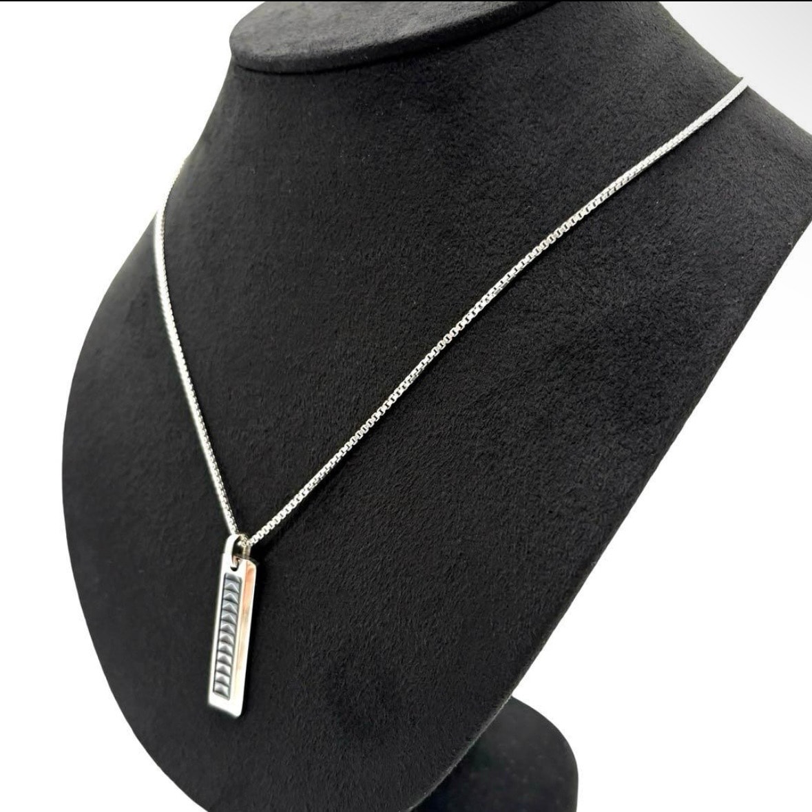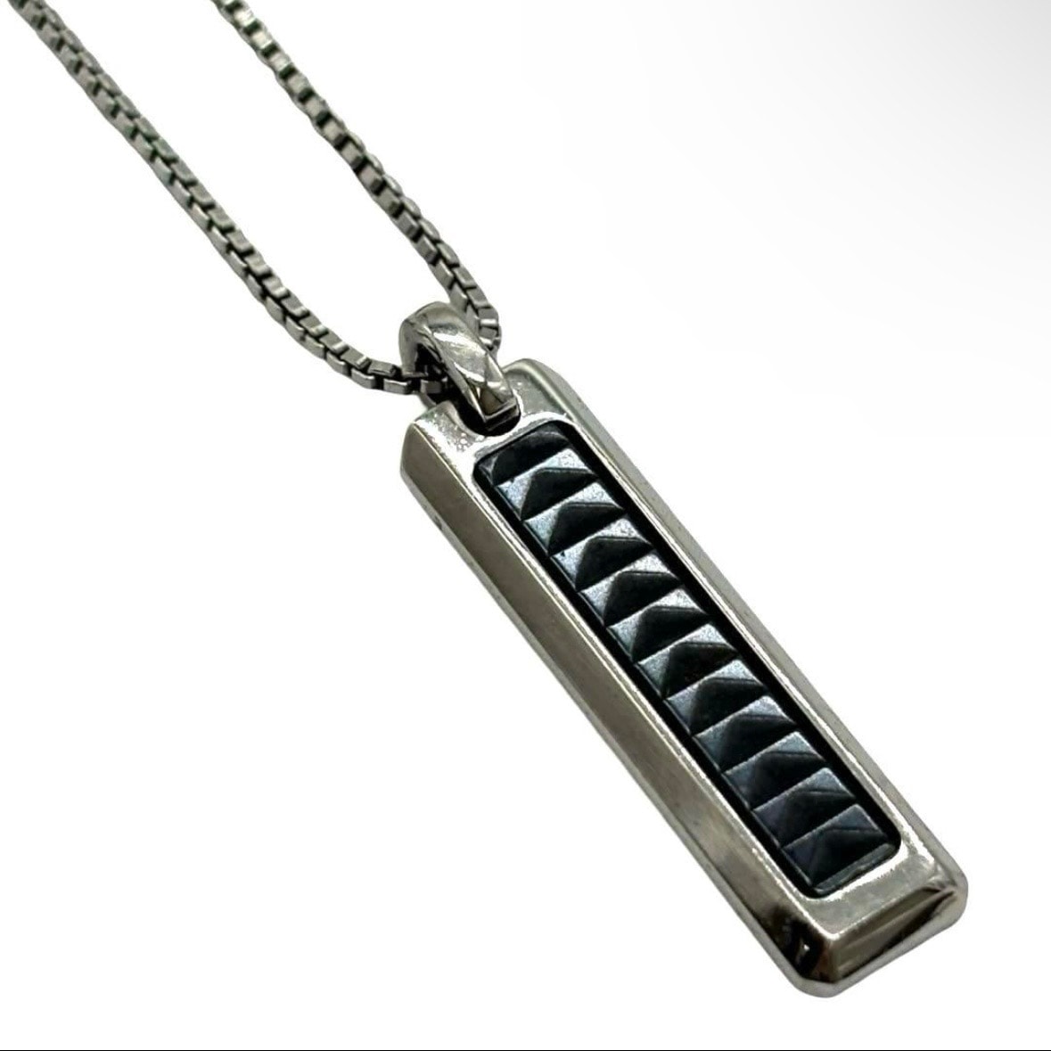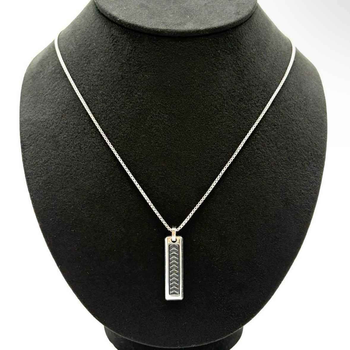 洗練されたチタン×シルバーの輝きに、ブラックのアクセントが映えるユニセックスデザイン。シンプルながら個性が光り、スーツにもカジュアルにもマッチする逸品です。