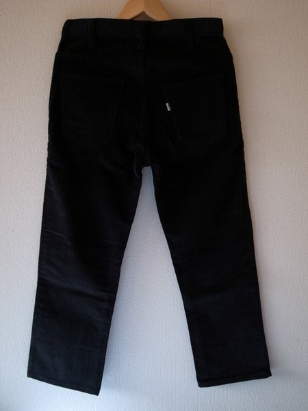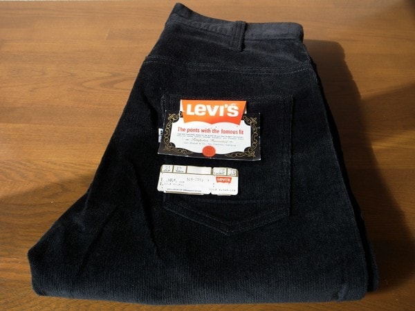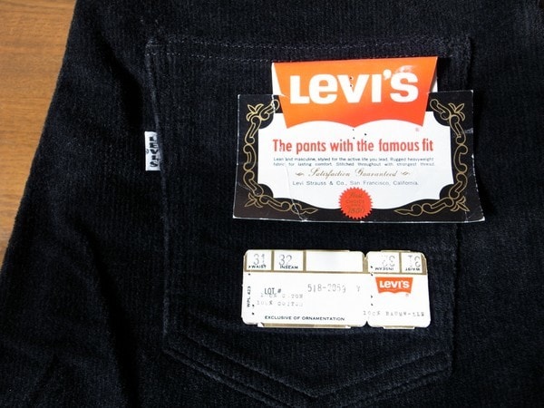 希少な60’sヴィンテージ・リーバイス518 ブラックコーデュロイです。 以前、デッドストックの状態で購入した物で、購入後に裾を直しております。未使用のまま保管しておりました。 ディティールは、ボタン裏刻印26、白タブビッグE、SCOVILLセミオートマチック・ジッパー、コインポケット です。 ジャストサイズをお探しの方、ヴィンテージコレクターの方にもお勧めできる状態です。 発送は兵庫県より、おてがる配送を予定しております。 お探しの方にお譲りします。