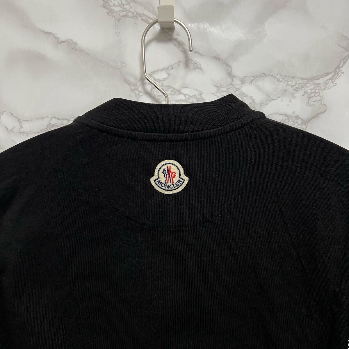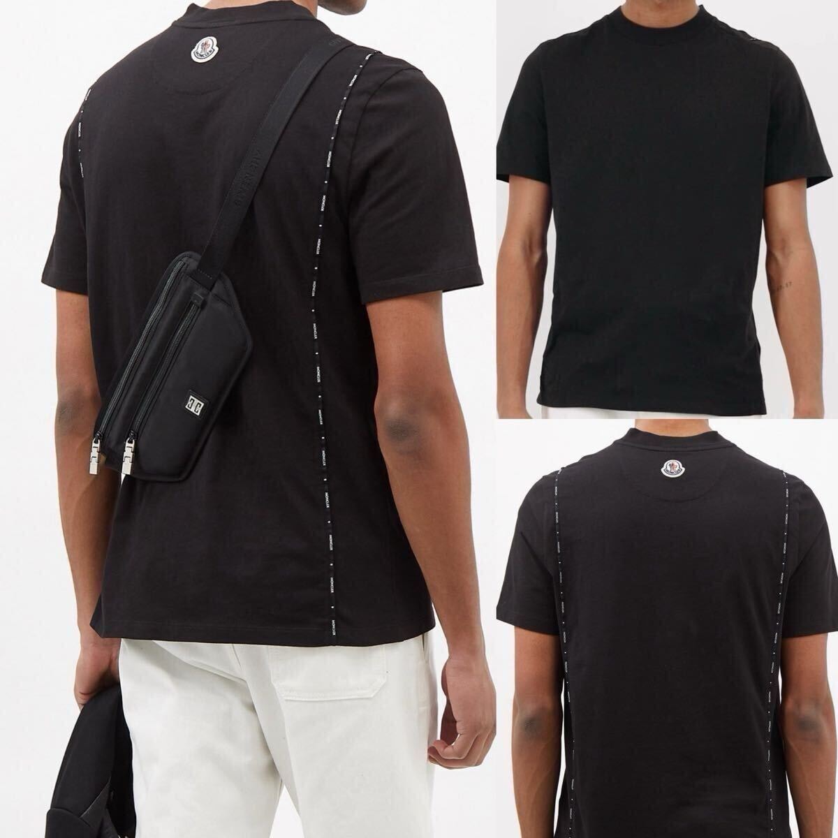 人気のモンクレールのロゴワッペンtシャツ未使用品です。こちらはブラック生地に、バックにロゴワッペンとロゴテープをデザインしたタイプで、綺麗なシルエットでとてもお洒落です。