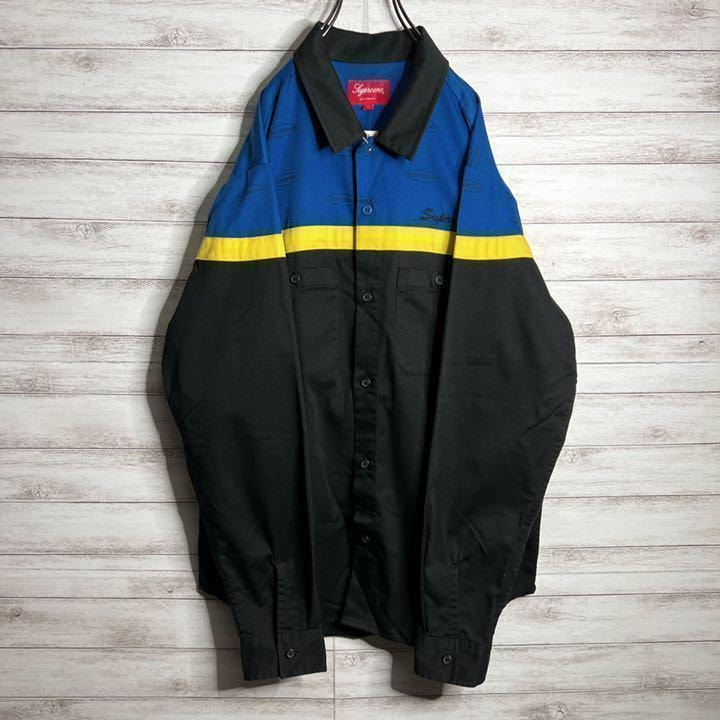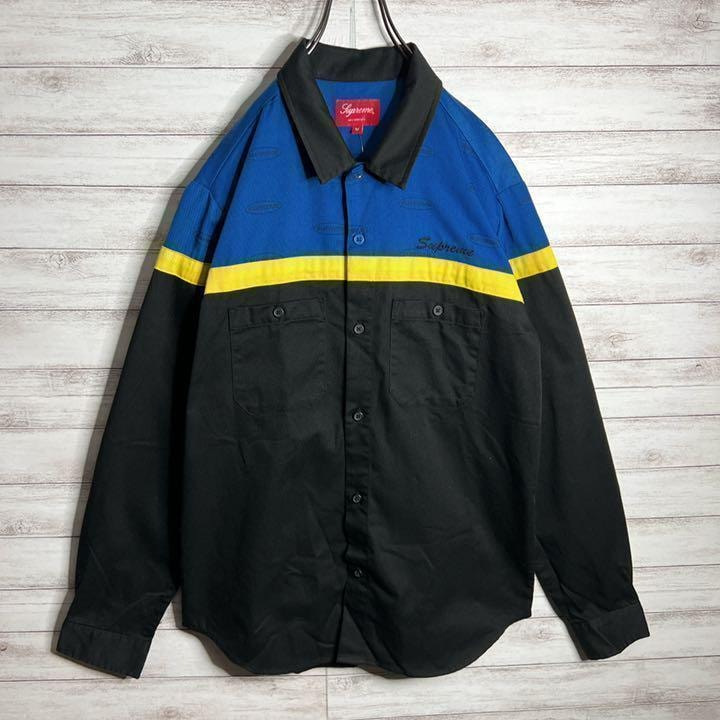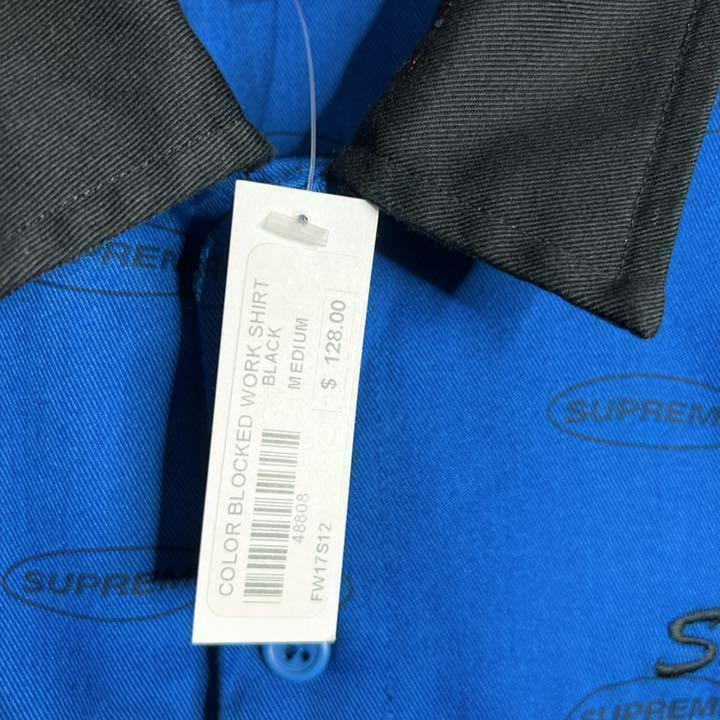 【新品未使用!!】シュプリーム Color Blocked Work Shirt 17FW 刺繍 長袖シャツ ゆるだぼ 重ね着 希少 supreme パーカー スウェット ワークシャツ