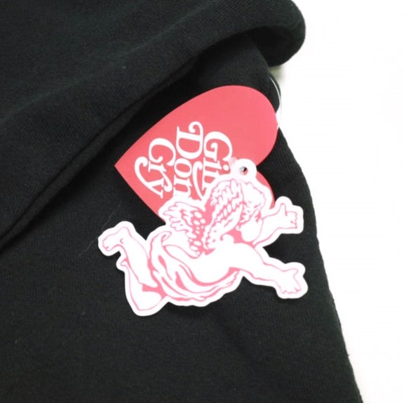 ブランドを代表する「Girls Don’t Cry」のロゴを胸元に、背面にはエンジェルのグラフィックが大胆にデザインされています。