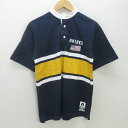 H■アヴィレックス/PX AVIREX 6183455 バンドカラー 半袖ラガーシャツ【M】紺/MENS■11【中古】