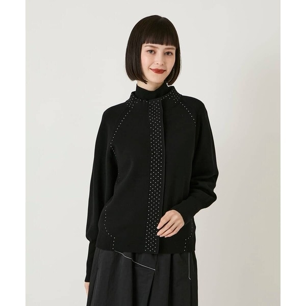 スクエア型の小さいメタルスタッズが華やかに印象付けるニットカーディガン