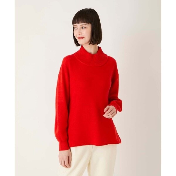 幅のあるリブハイネックに裾を広げたゆったりめのシルエットでラフに着用頂ける一枚。ピッチの変化やリンキングで凹凸を出したニュアンスある表情が魅力的なお作りです。ふっくらと暖かいウール仕立てで軽やかな着心地も嬉しいポイント。シンプルながらも存在感たっぷりに演出してくれる汎用性の高いおすすめのアイテムです。