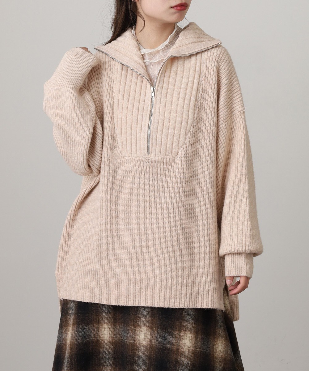 このハーフZIPニットトップスは、秋冬のレディーススタイルに大人の抜け感とこなれた印象を添える主役アイテム。