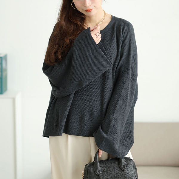 3シーズン着れる!クロップドオーバーサイズハイゲージニットが登場☆どんなボトムスにも合わせやすくスタイルアップ見えする計算されたクロップ丈。体型を拾わずゆったりワイドなシルエットで華見せ効果があるのも嬉しいポイント♪たっぷりワイドな袖幅であざと可愛いルーズ感を演出◎普段着としてはもちろんお出かけやカジュアルなデート服にもオススメの一着です☆
